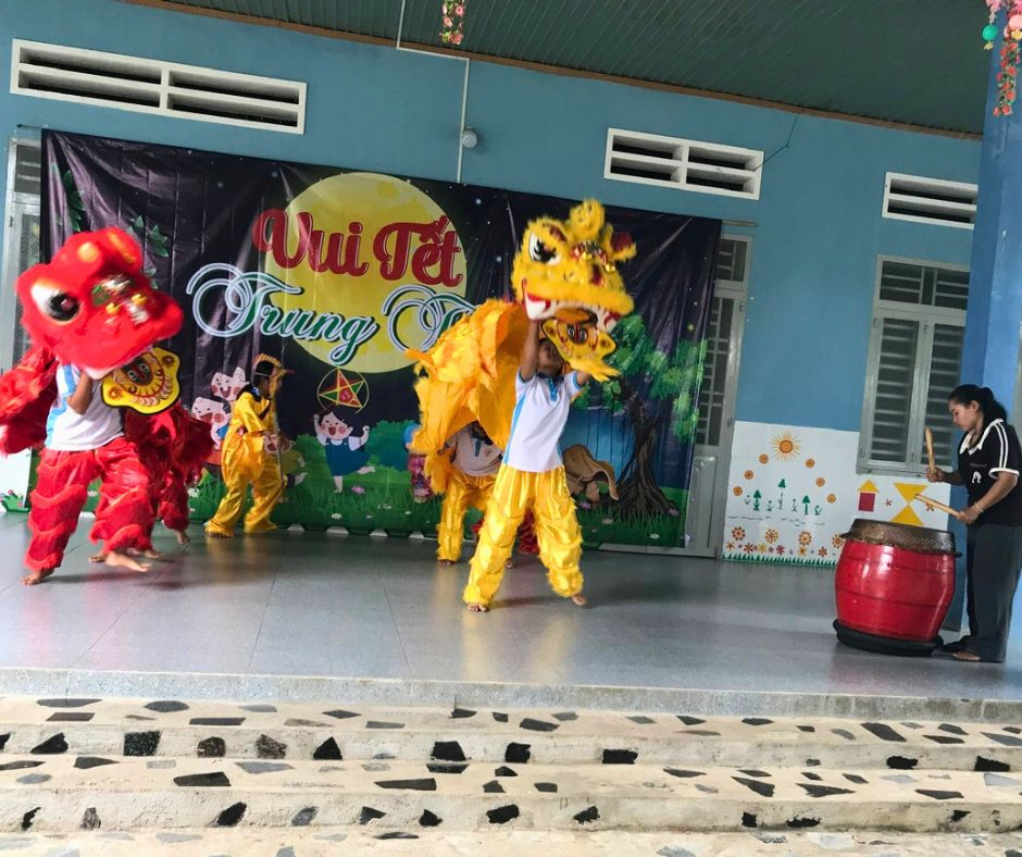 Thiếu nhi hớn hở bước chan hòa.