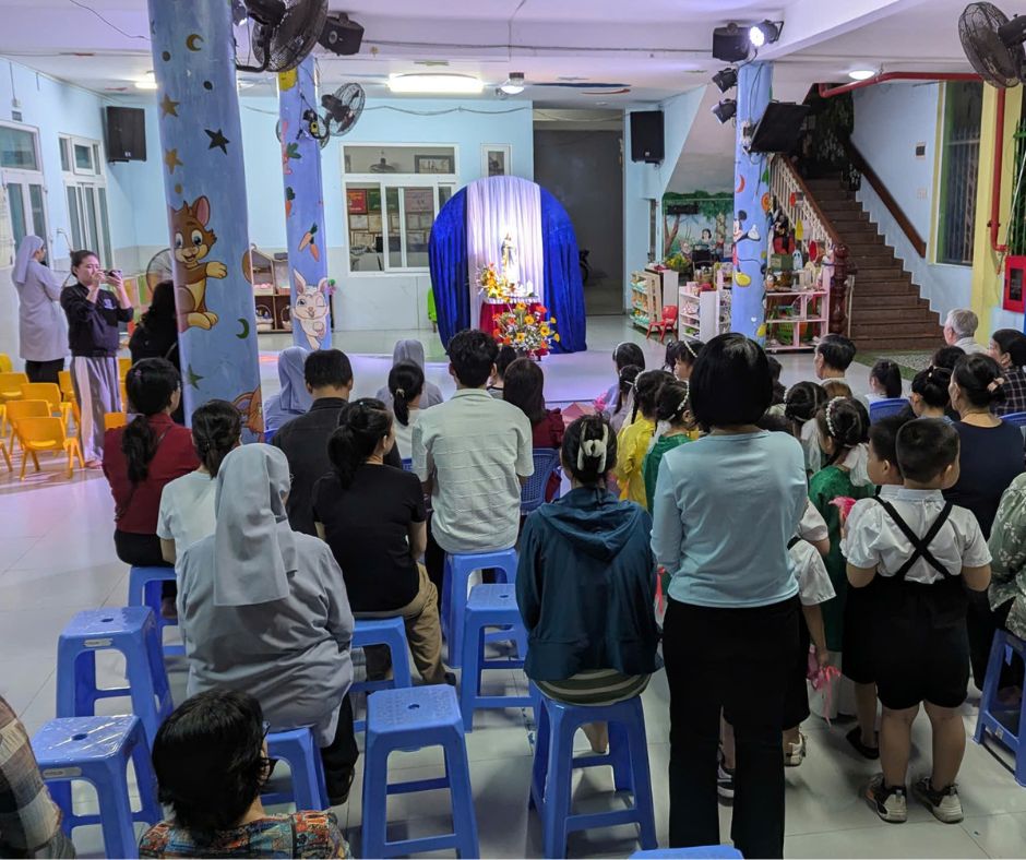 Buổi cầu nguyện không chỉ dành riêng cho các anh chị em giáo dân chi họ Martino, nơi cộng đoàn chị em Phaolô đang hiện diện, mà còn quy tụ đông đảo phụ huynh Trường Mầm non Vàng Anh – Tỉnh Dòng Phaolô Đà Nẵng, gồm cả anh chị em Công giáo và ngoài Công giáo. Tất cả đều được mời gọi bước vào giờ cầu nguyện với tâm tình yêu mến và lòng biết ơn sâu xa dành cho Mẹ.