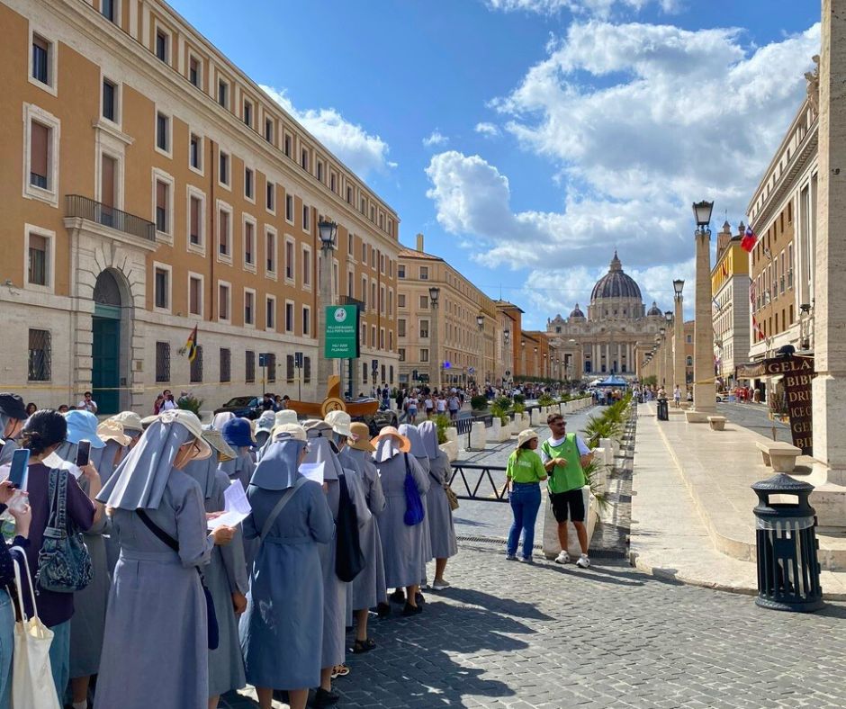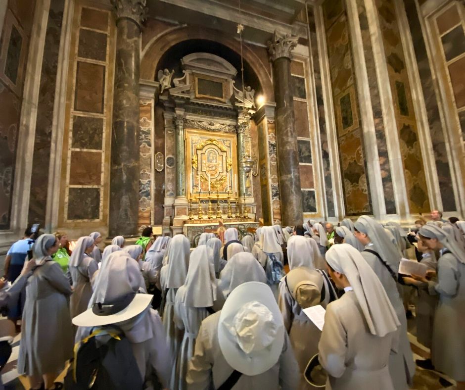 Roma, ngày 12 tháng 09 năm 2025 – Trong không khí trang nghiêm và đầy xúc động, gần 100 nữ tu Dòng Chị Em Thánh Phaolô Thành Chartres, bao gồm các đại biểu tham dự Tổng Công Hội lần thứ 49 và quý chị em trong Cộng đoàn Nhà Tổng Quản, đã thực hiện cuộc hành hương tới Đền Thờ Thánh Phêrô tại Vatican. Tại đây, các chị em đã long trọng cử hành nghi thức bước qua Cửa Thánh.
