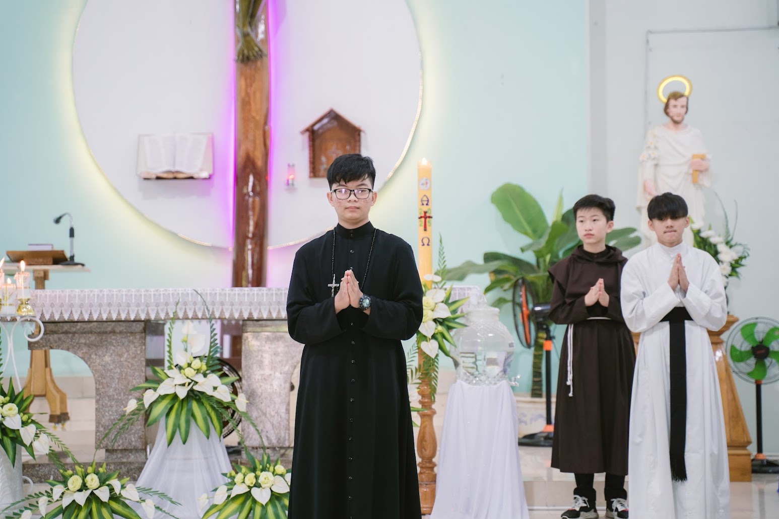 Sau phần cầu nguyện, các em trở về chỗ ngồi, cùng cộng đoàn bước vào Thánh lễ trong bầu khí sốt sắng.