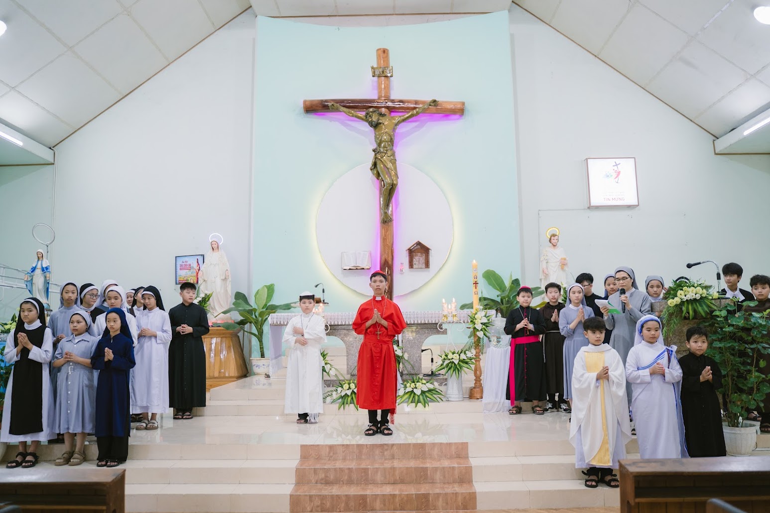 Chúa nhật IV Phục Sinh – ngày Chúa Chiên Lành, 11/5/2025, trong niềm hiệp thông với Giáo hội hoàn vũ, Giáo xứ Phú Bổn (GP. Kontum) đã long trọng cử hành Thánh lễ cầu nguyện cách đặc biệt cho Ơn Thiên Triệu – cầu xin cho những người trẻ biết quảng đại đáp lại tiếng Chúa mời gọi dấn thân trong đời sống thánh hiến và linh mục.