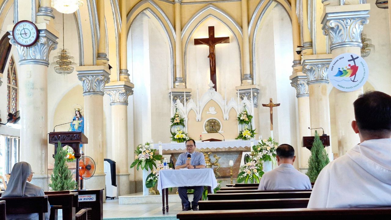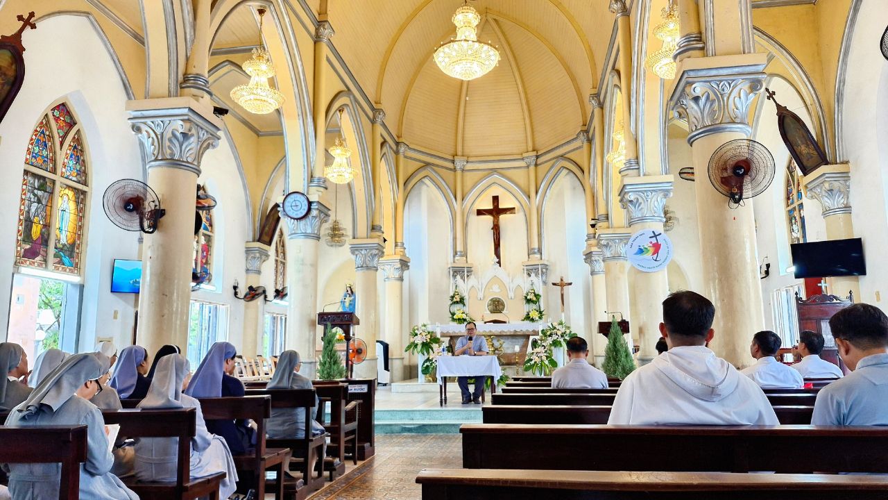 Sáng ngày 9 tháng 10 năm 2025, tại Nhà thờ Chính Tòa Đà Nẵng, hơn 100 tu sĩ nam nữ thuộc các hội dòng và hiệp hội đang hiện diện và phục vụ trong Giáo phận đã cùng quy tụ về tham dự ngày Hành hương Năm Thánh, trong tinh thần hiệp thông, tạ ơn và canh tân đời sống thánh hiến. Đây là một dịp đặc biệt để các tu sĩ sống lại ơn gọi ban đầu, làm mới lại tình yêu dâng hiến và cùng nhau suy tư về căn tính đời tu giữa lòng Giáo hội hôm nay.