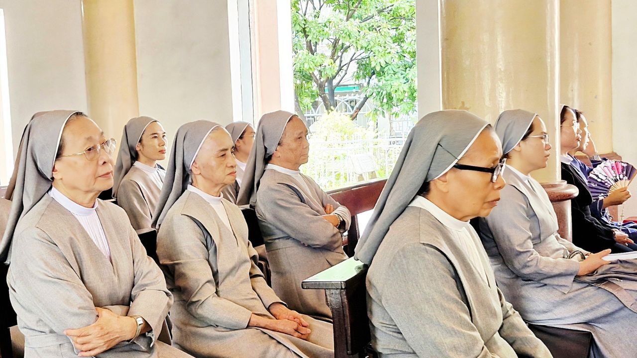 Chương trình bắt đầu lúc 8g30 với giờ sinh hoạt chung trong Nhà thờ. Đúng 9g00, cha Philipphê Trần Thanh Minh, SJ đã có một bài chia sẻ đầy chiều sâu xoay quanh căn tính đời sống thánh hiến trong bối cảnh xã hội và Giáo hội. Cha nhấn mạnh rằng đời tu không chỉ là một chọn lựa cá nhân nhưng là lời đáp trả tình yêu với Chúa Giêsu, là hành trình trung tín và kiên trì theo Chúa đến cùng. Người tu sĩ hôm nay được mời gọi không ngừng làm mới lại “tình yêu thuở ban đầu”, can đảm sống chứng tá giữa một thế giới dễ thỏa hiệp, và trở nên dấu chỉ của hy vọng, tình yêu và công lý của Thiên Chúa, đặc biệt qua chọn lựa ưu tiên người nghèo.