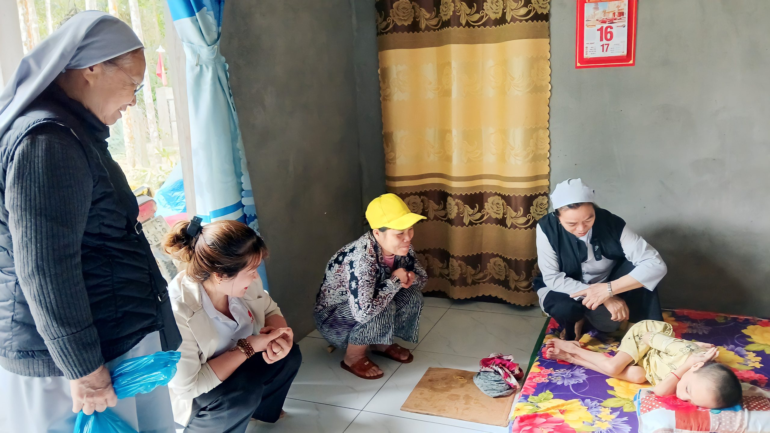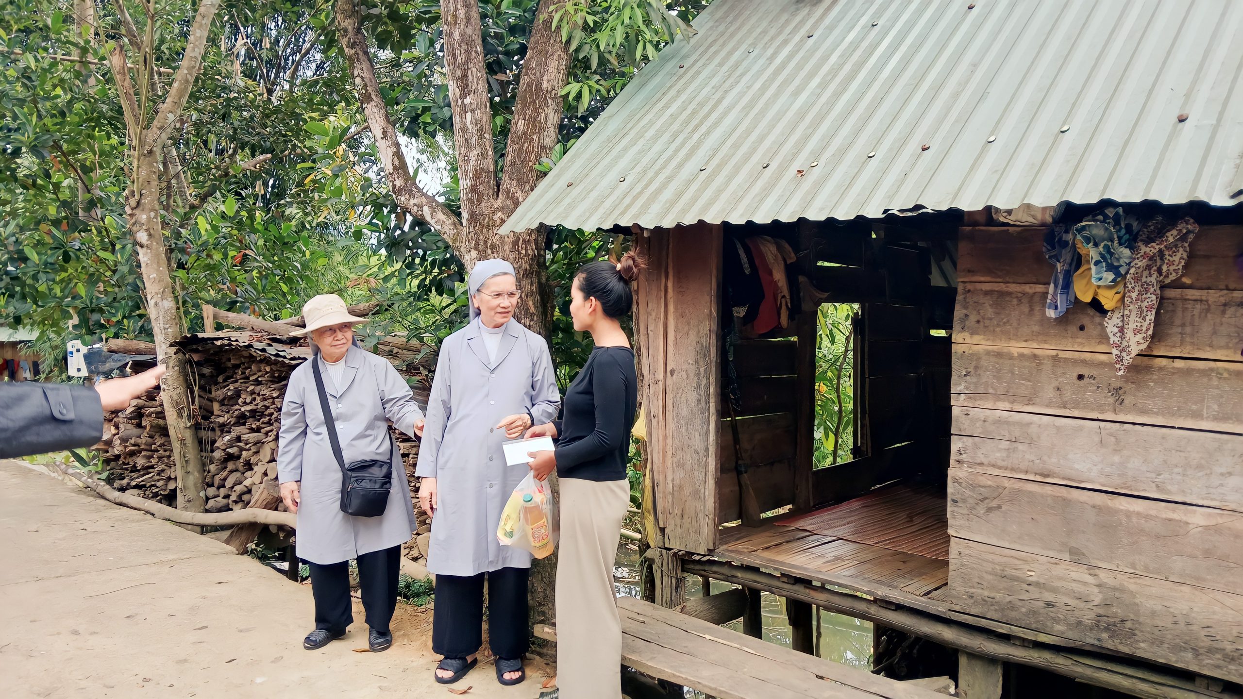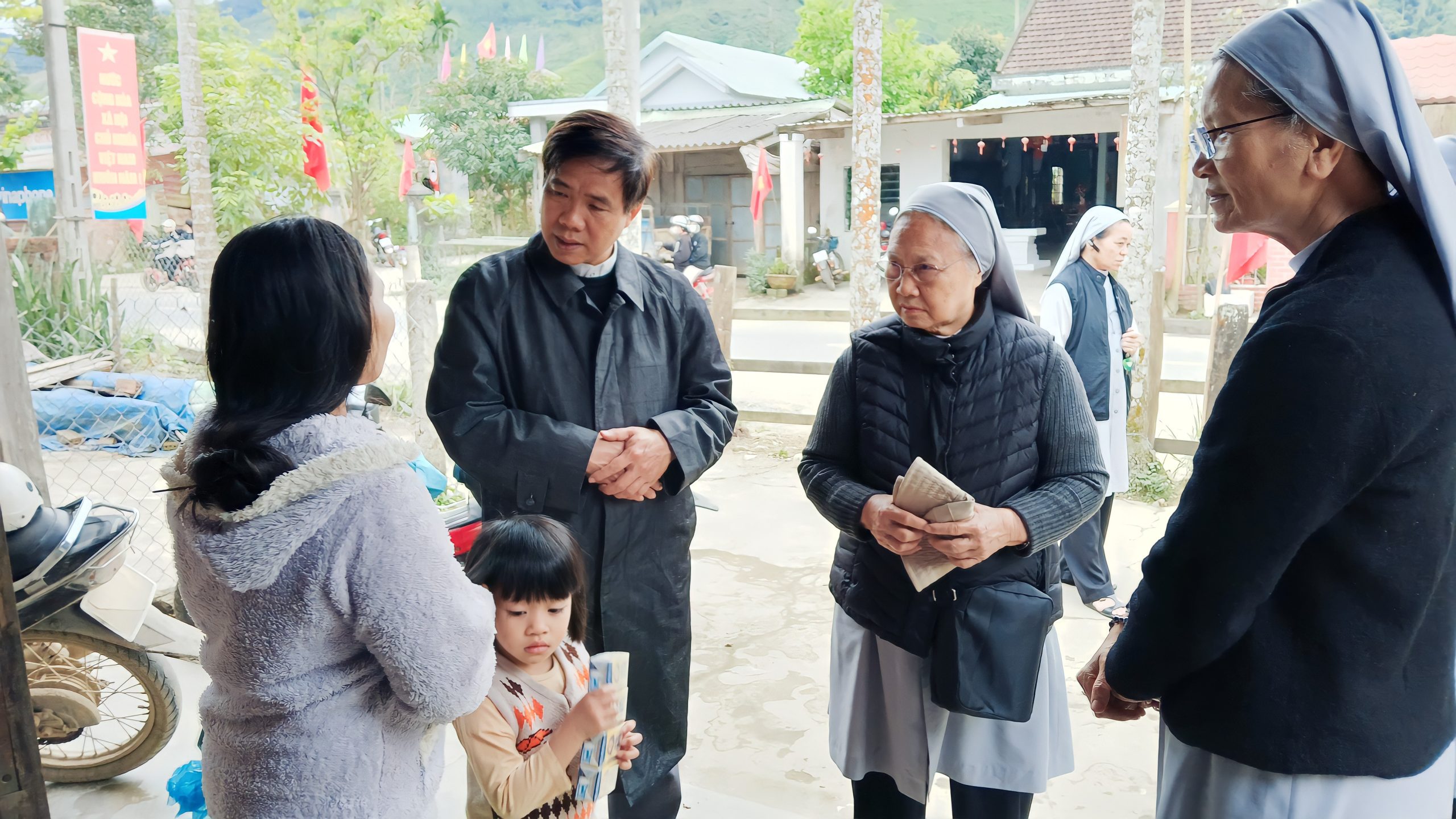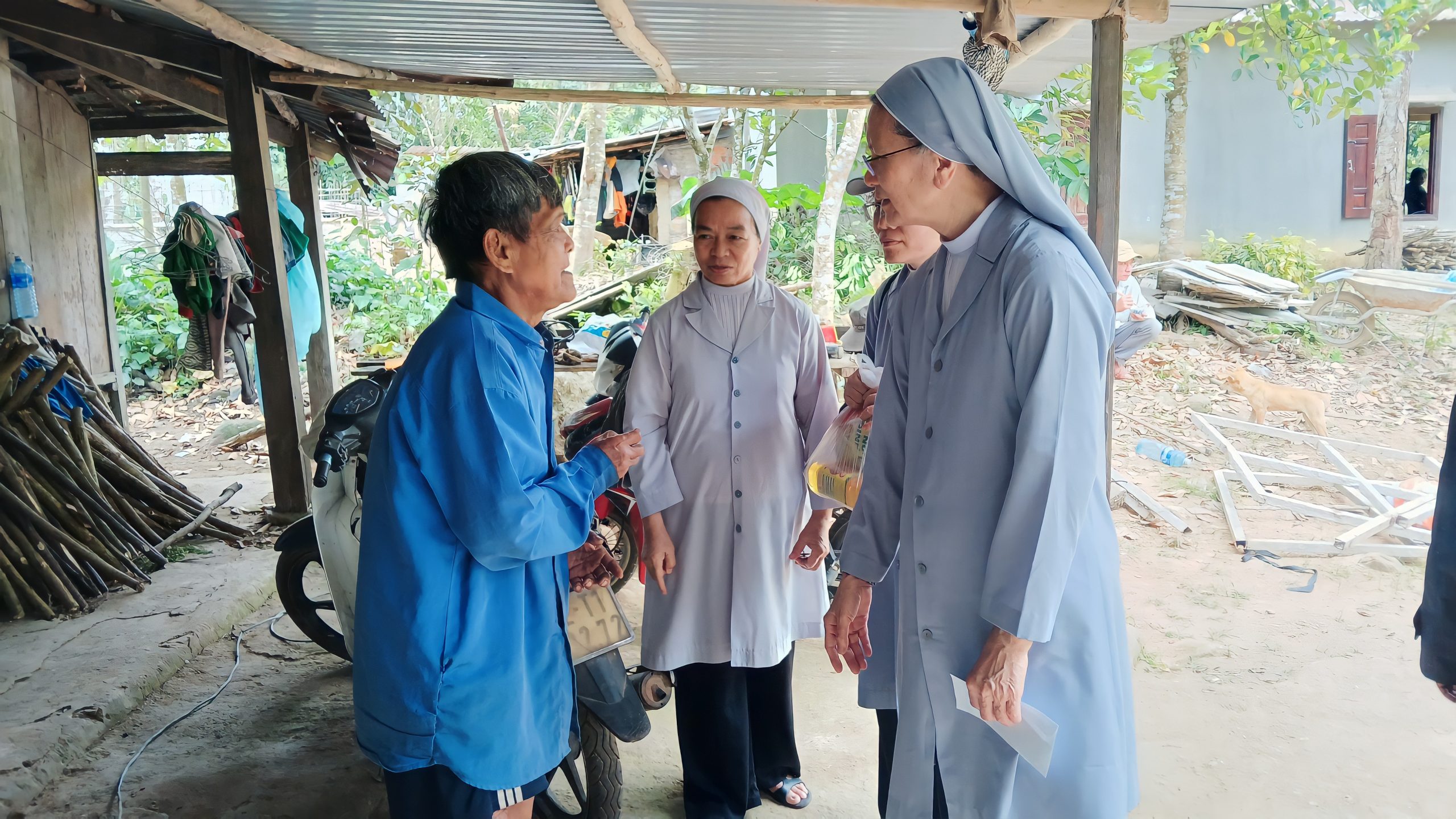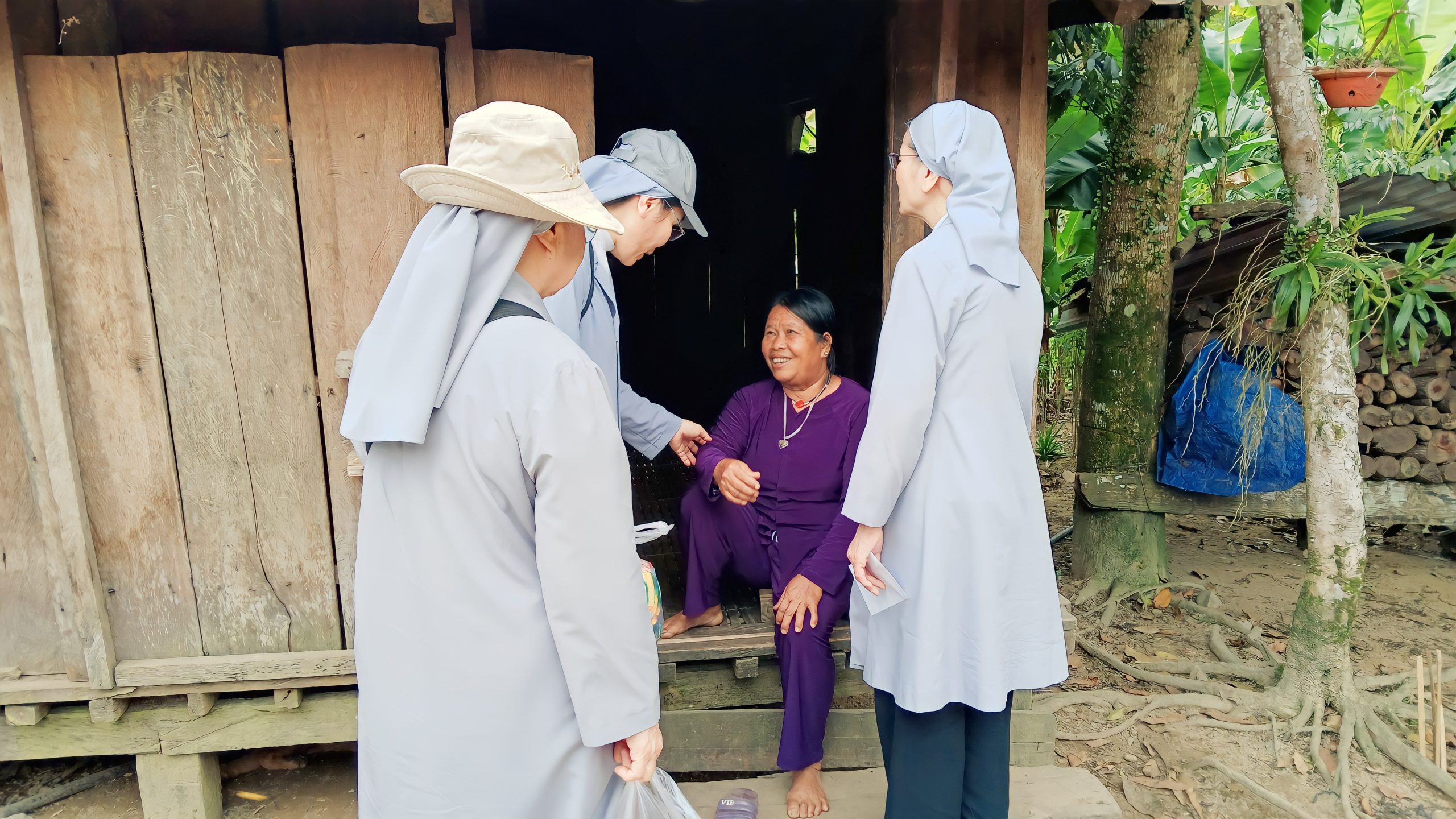 Kết nối với các tình nguyện viên tại địa phương, nhóm đến với 3 địa điểm khác nhau và ước muốn đến với từng hoàn cảnh, từng gia đình tại Xã Ba, Giáo họ Bền và Giáo họ Prao. Chúa Kitô khó nghèo đã thực sự hiện diện ở đây, nghèo đói, bệnh tật, mất mát như hằn trên khuôn mặt, khóe mắt của những con người nơi này. Nhưng bên trong vẫn ẩn chứa một niềm vui lớn lao của cuộc sống. Chuyến đi lần này chúng tôi hầu hết đến với các anh chị em lương dân, chưa nhận biết Chúa, vì vậy hình ảnh hiện diện của chị em nữ tu Phaolô trong ngôi nhà nghèo khó của họ dường như là một điều gì đó rất lạ lẫm.