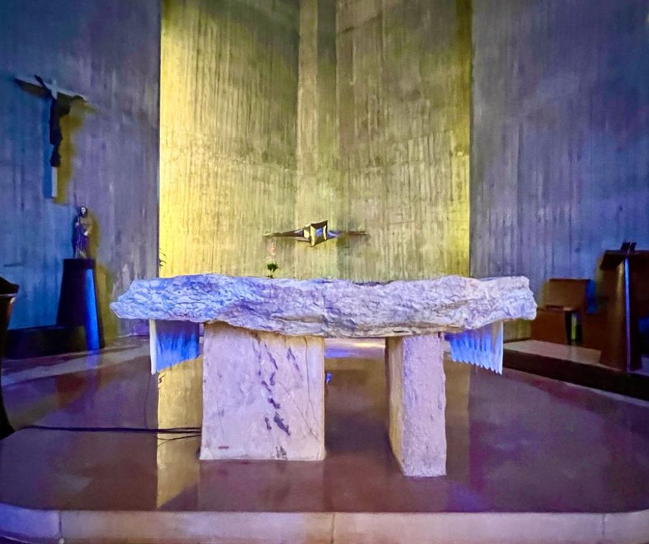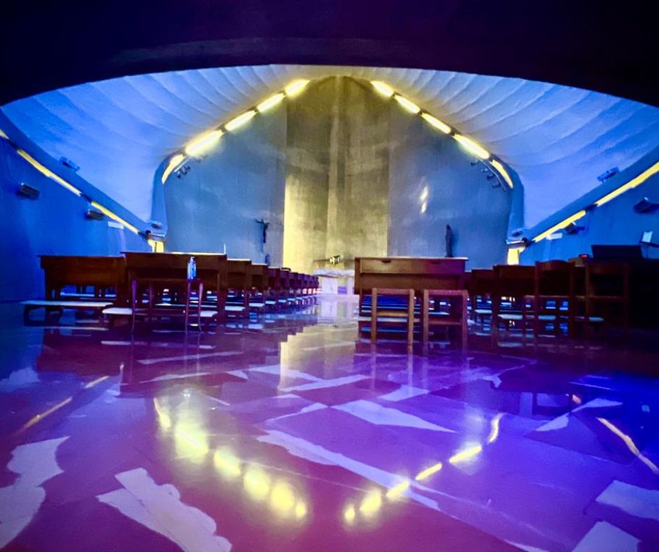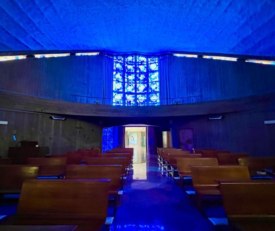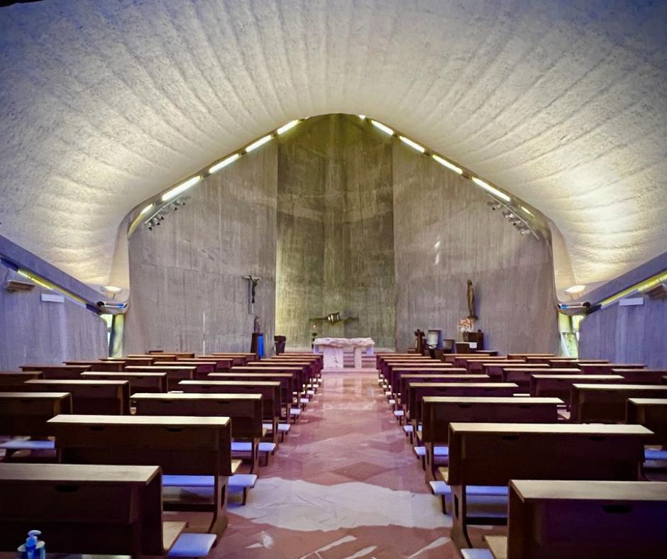 Sau bữa trưa, Mẹ ân cần dẫn tôi thăm viếng. Từ hành lang, từng hiện vật đều mang một câu chuyện. Hai mô hình từ Hàn Quốc và Việt Nam nổi bật lên, như một minh chứng cho sức sống của dòng tại Á Đông. Lên nhà nguyện, Mẹ say sưa giảng giải về kiến trúc tân kỳ, về bàn thờ bằng đá do một nghệ nhân nổi tiếng thực hiện, và đặc biệt là bức vách kính màu xanh rực rỡ phía trên cửa vào – một biểu tượng của niềm hy vọng vươn lên trời cao.