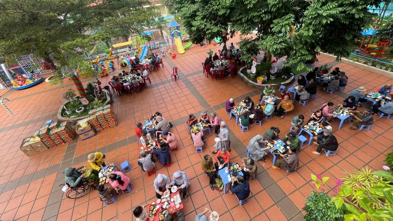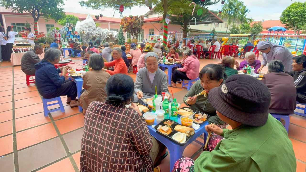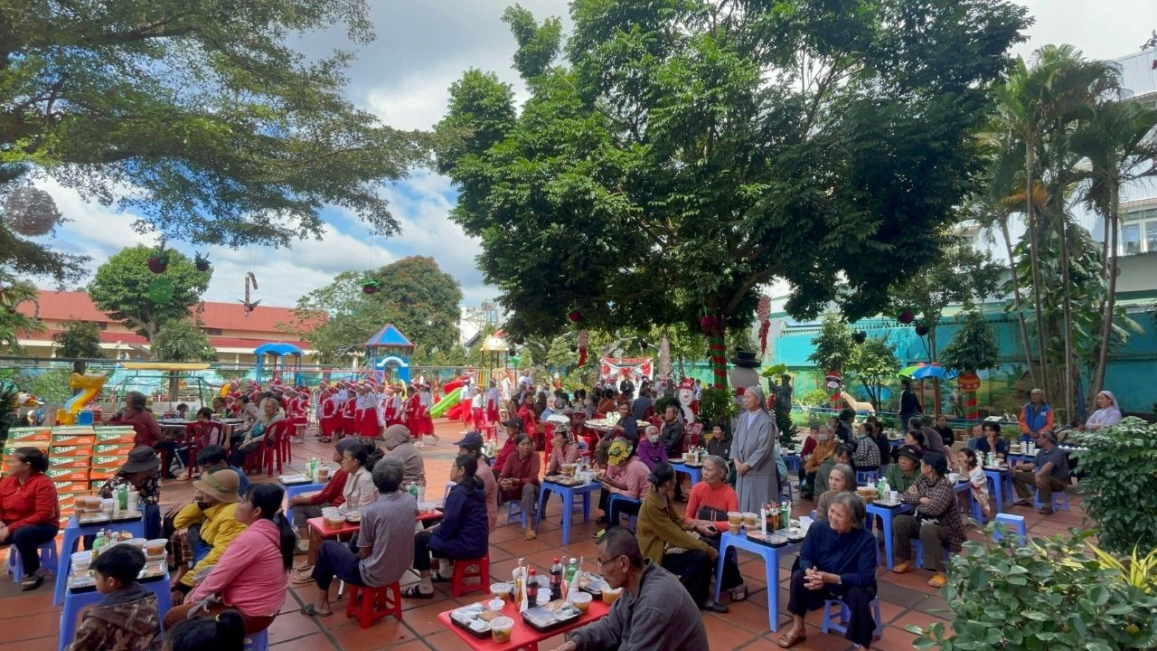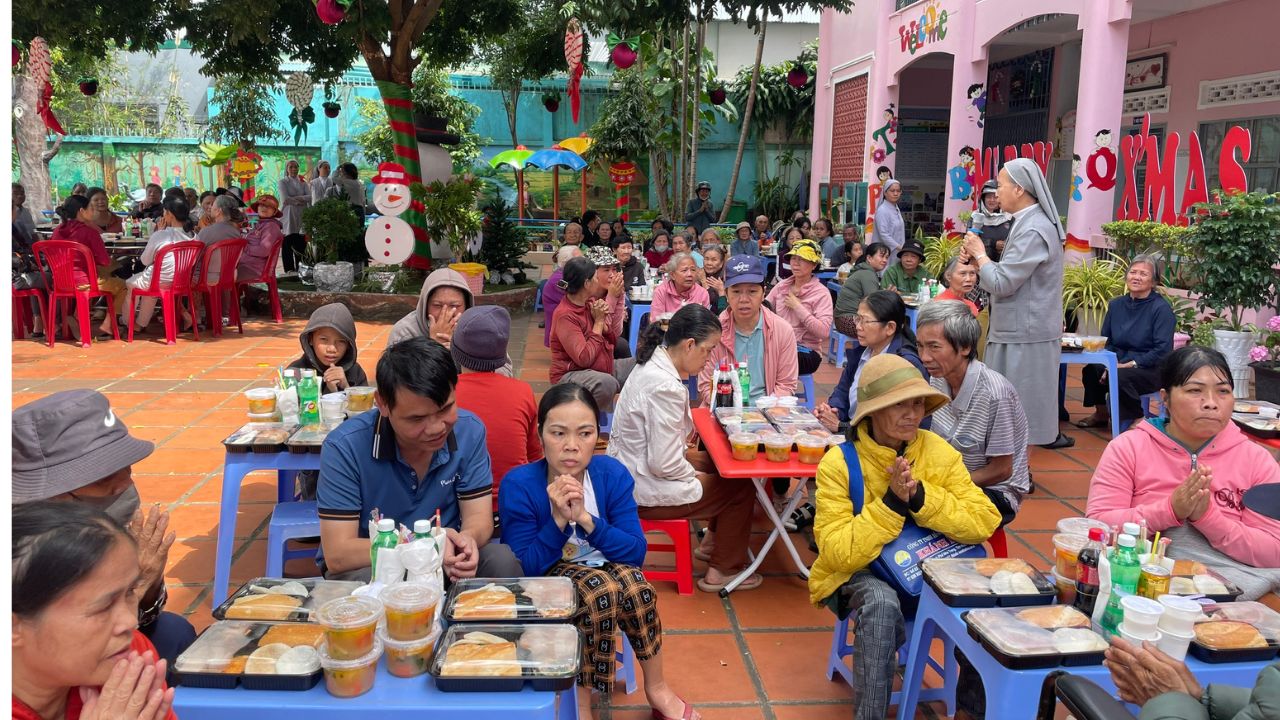 Trong không khí rộn ràng của những ngày chuẩn bị mừng Chúa Giáng Sinh và năm mới 2026, giữa sự lộng lẫy của phố thị, đâu đó quanh ta vẫn còn những góc khuất của những người lao động nghèo khổ, những cụ già không nơi nương tựa, những trẻ em đang tuổi ăn tuổi học phải bôn ba nơi phố chợ để mưu sinh – Đối với họ, một bữa cơm no đủ vốn dĩ là một niềm hạnh phúc lớn lao. Nơi Cộng Đoàn Thánh Phaolô 118 Phan Chu Trinh, BMT của chúng tôi, mùa Giáng Sinh không chỉ là ngày lễ của niềm vui tự thân, mà là mùa của “Thiên Chúa ở cùng chúng ta” thông qua những hành động chia sẻ cụ thể. Một bữa cơm ấm áp cho khoảng hơn một trăm người ăn cùng những món quà yêu thương mang về. Chúng tôi không chỉ hỗ trợ về vật chất mà còn lan tỏa hơi ấm tình người.
