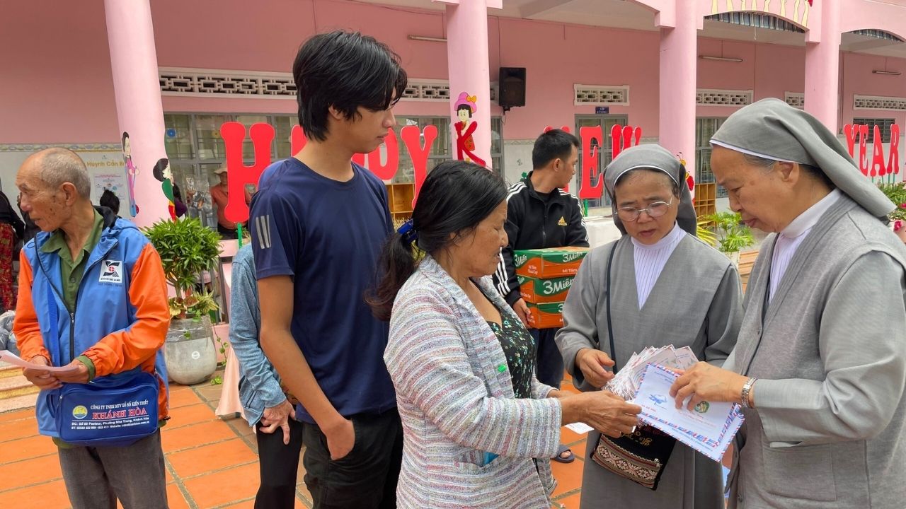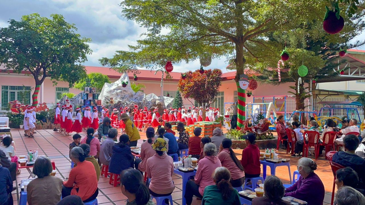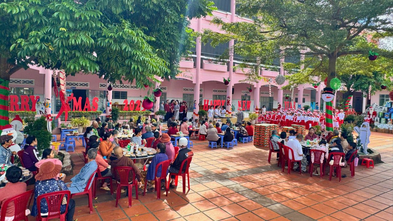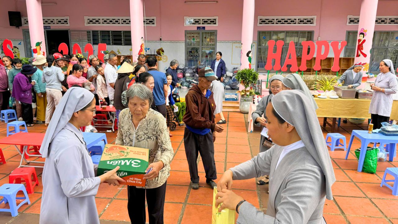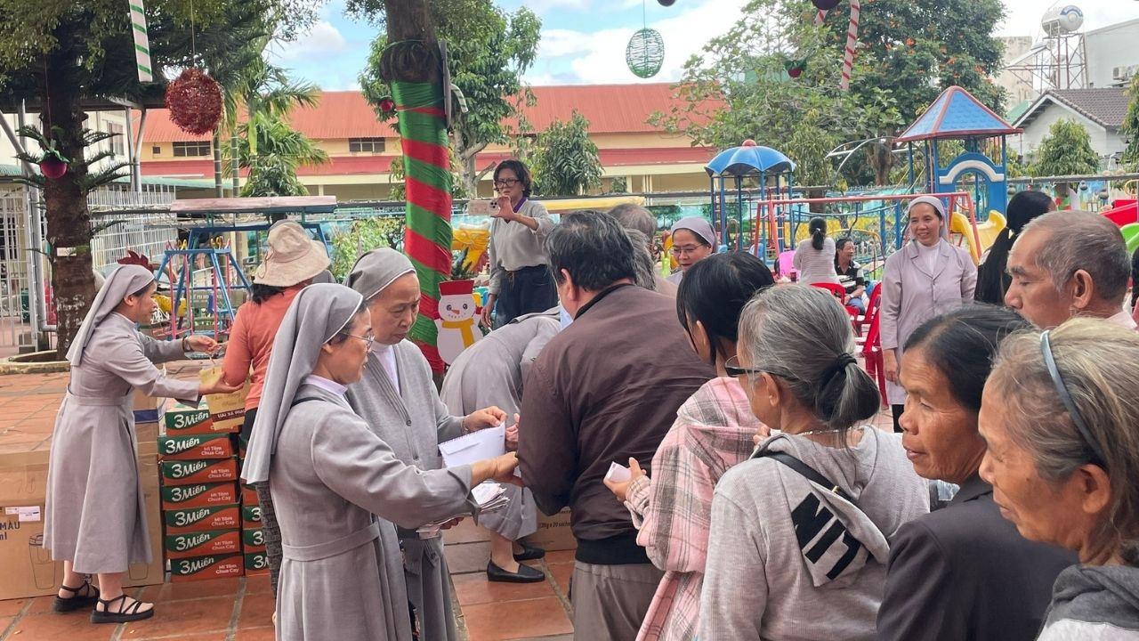 Trong không khí rộn ràng của những ngày chuẩn bị mừng Chúa Giáng Sinh và năm mới 2026, giữa sự lộng lẫy của phố thị, đâu đó quanh ta vẫn còn những góc khuất của những người lao động nghèo khổ, những cụ già không nơi nương tựa, những trẻ em đang tuổi ăn tuổi học phải bôn ba nơi phố chợ để mưu sinh – Đối với họ, một bữa cơm no đủ vốn dĩ là một niềm hạnh phúc lớn lao. Nơi Cộng Đoàn Thánh Phaolô 118 Phan Chu Trinh, BMT của chúng tôi, mùa Giáng Sinh không chỉ là ngày lễ của niềm vui tự thân, mà là mùa của “Thiên Chúa ở cùng chúng ta” thông qua những hành động chia sẻ cụ thể. Một bữa cơm ấm áp cho khoảng hơn một trăm người ăn cùng những món quà yêu thương mang về. Chúng tôi không chỉ hỗ trợ về vật chất mà còn lan tỏa hơi ấm tình người.