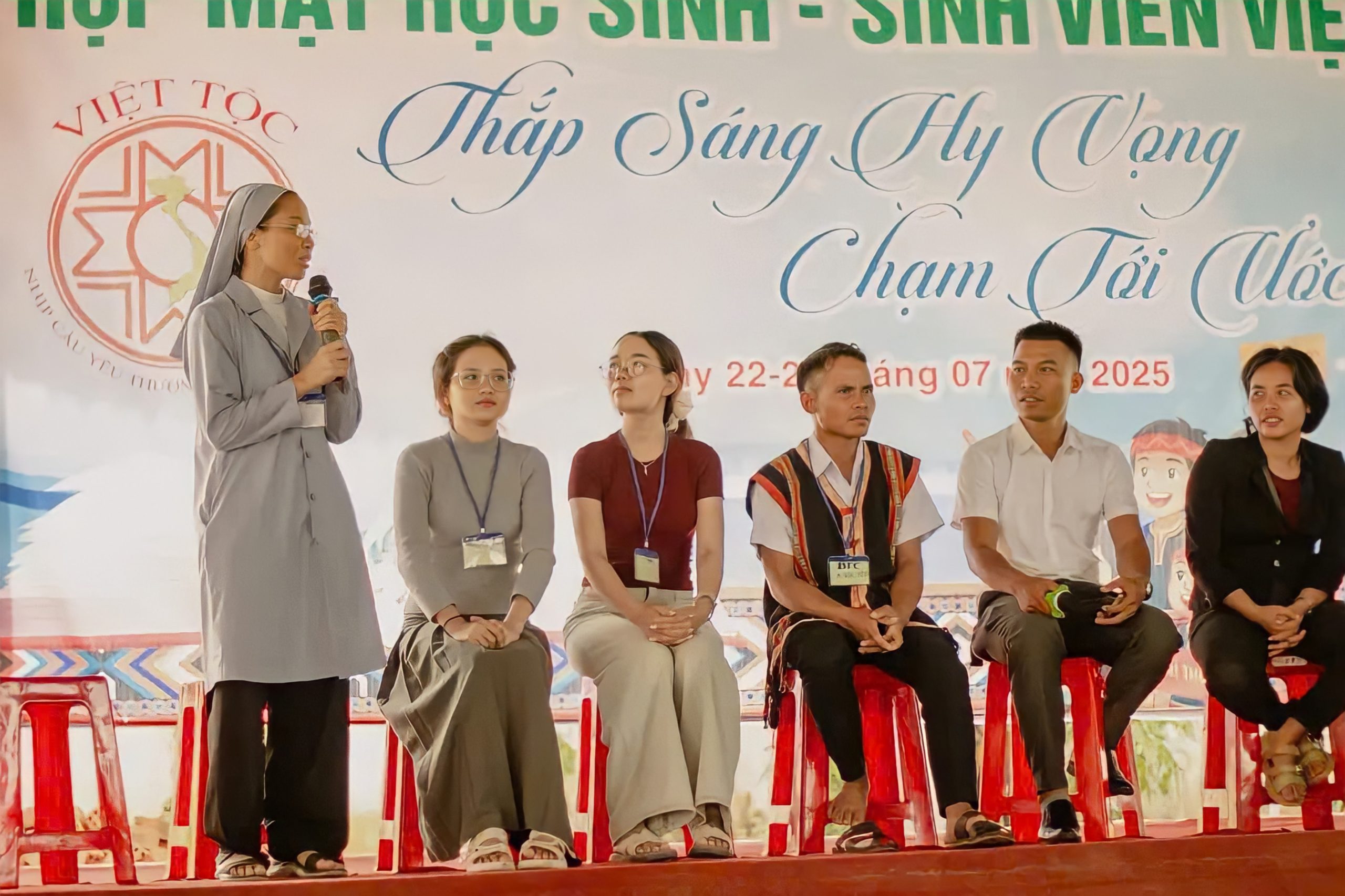 Từ ngày 22 đến 23 tháng 7 năm 2025, tại nhà thờ Giáo xứ Tân Hương (số 92 Nguyễn Huệ, Tp. Kon Tum), chương trình Hội trại Việt Tộc 2025 đã diễn ra trong bầu khí vui tươi và đầy hy vọng. Chủ đề hội trại năm nay là: “Thắp sáng hy vọng – Chạm tới ước mơ”, quy tụ hơn 450 học sinh cấp 2, cấp 3 và sinh viên dân tộc thiểu số đến từ 27 đơn vị trên địa bàn các tỉnh Tây Nguyên.