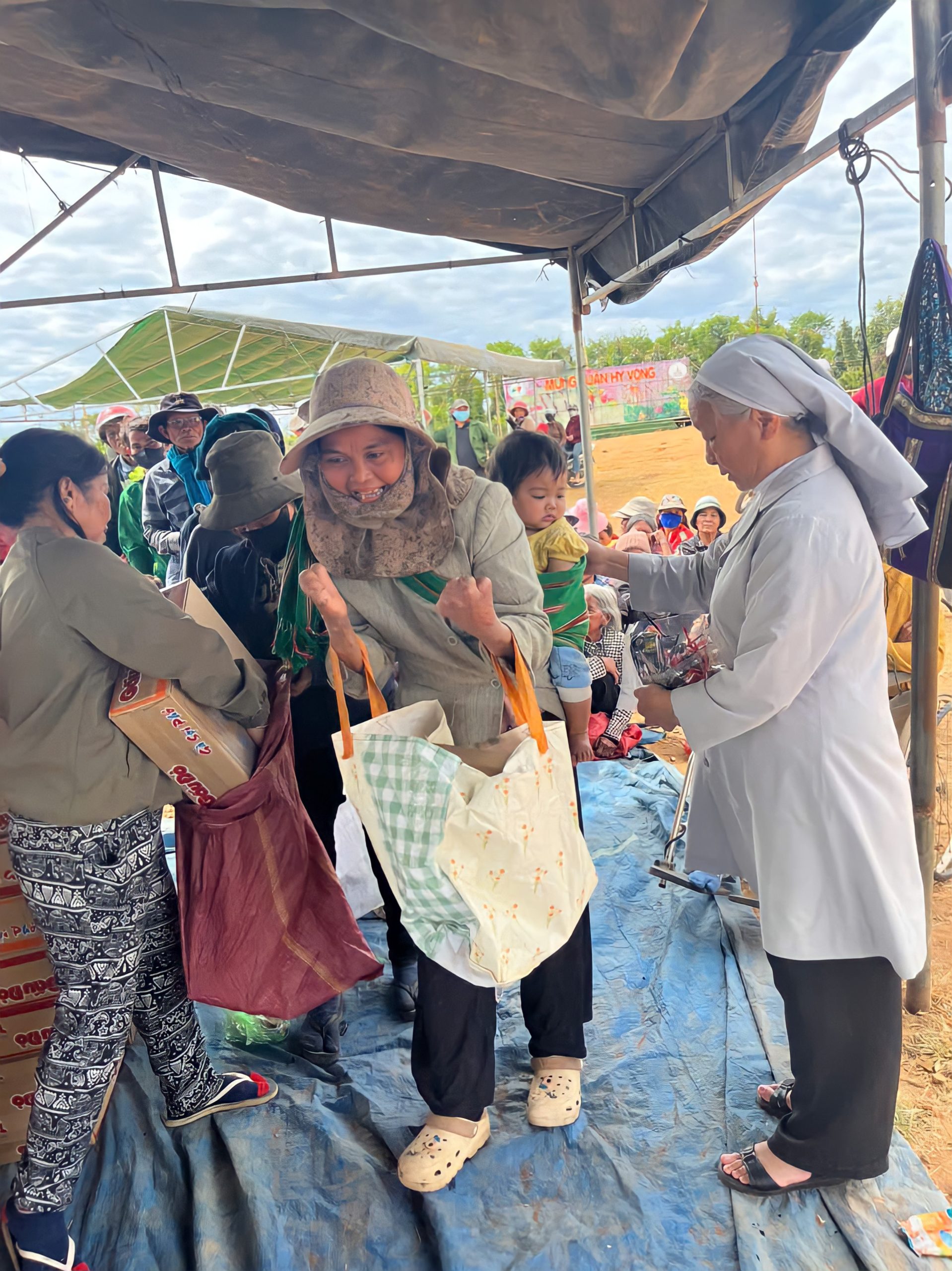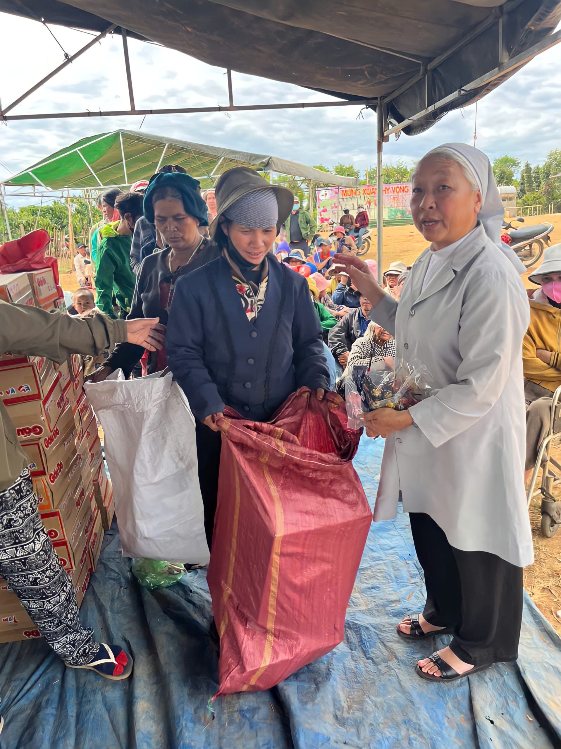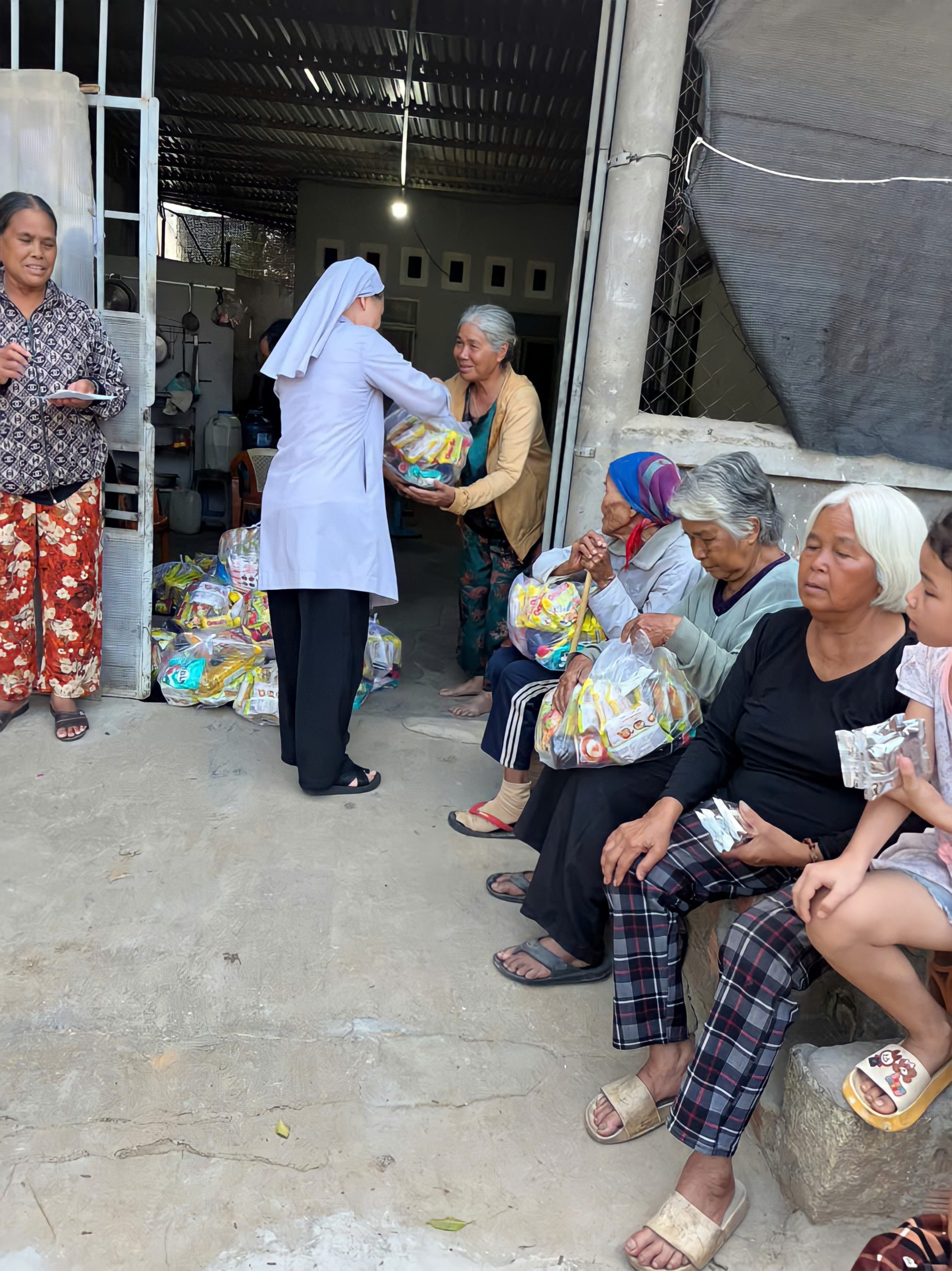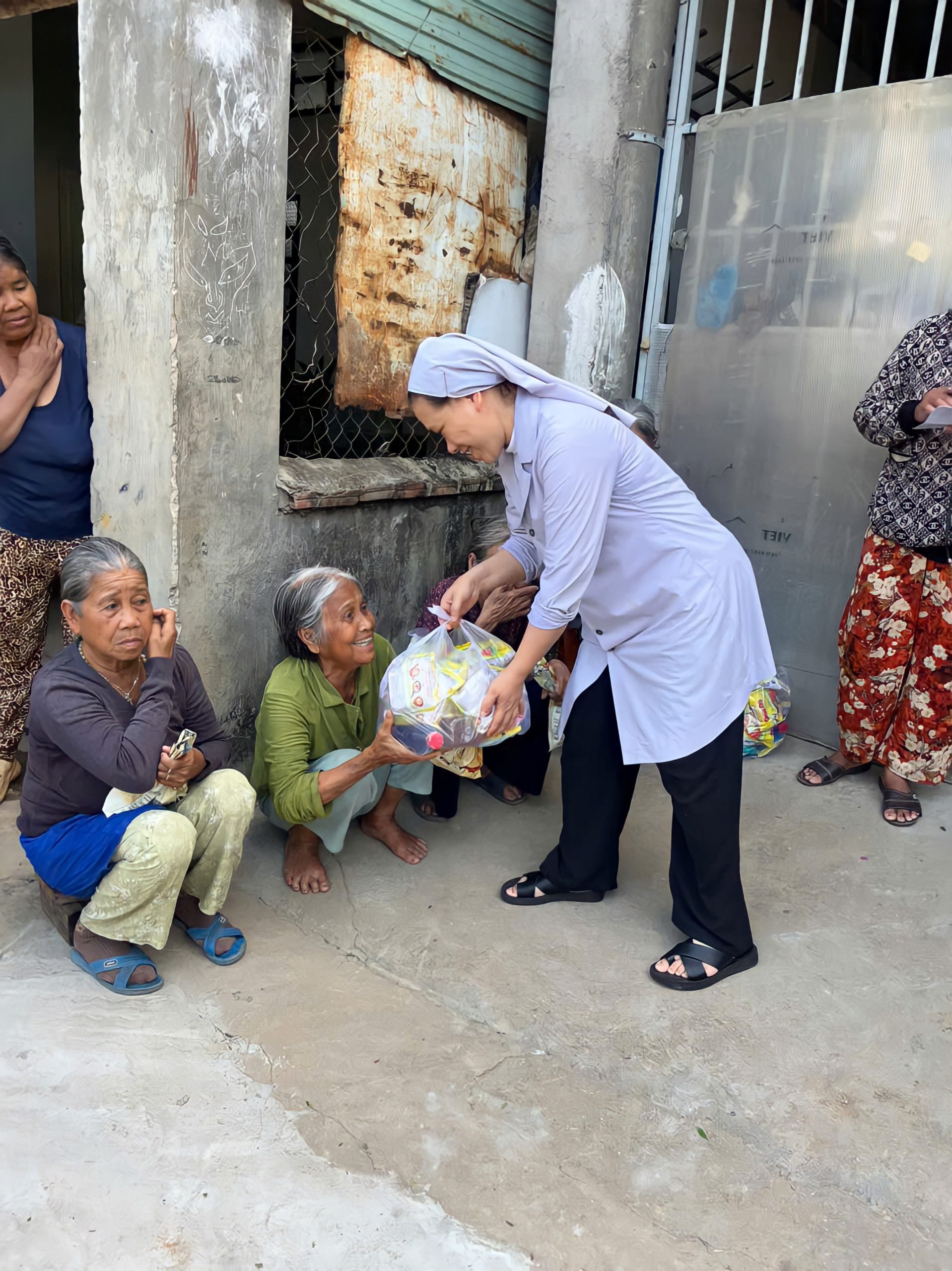 Với trái tim đầy nhiệt huyết, chị em đã đến với người nghèo, người già và trẻ nhỏ, không chỉ trao tay gói quà, bát cháo, viên thuốc… mà còn là niềm vui thiêng liêng của Đấng Phục Sinh, được thắp lên qua lời kinh, nụ cười và cái nắm tay đầy cảm thông.