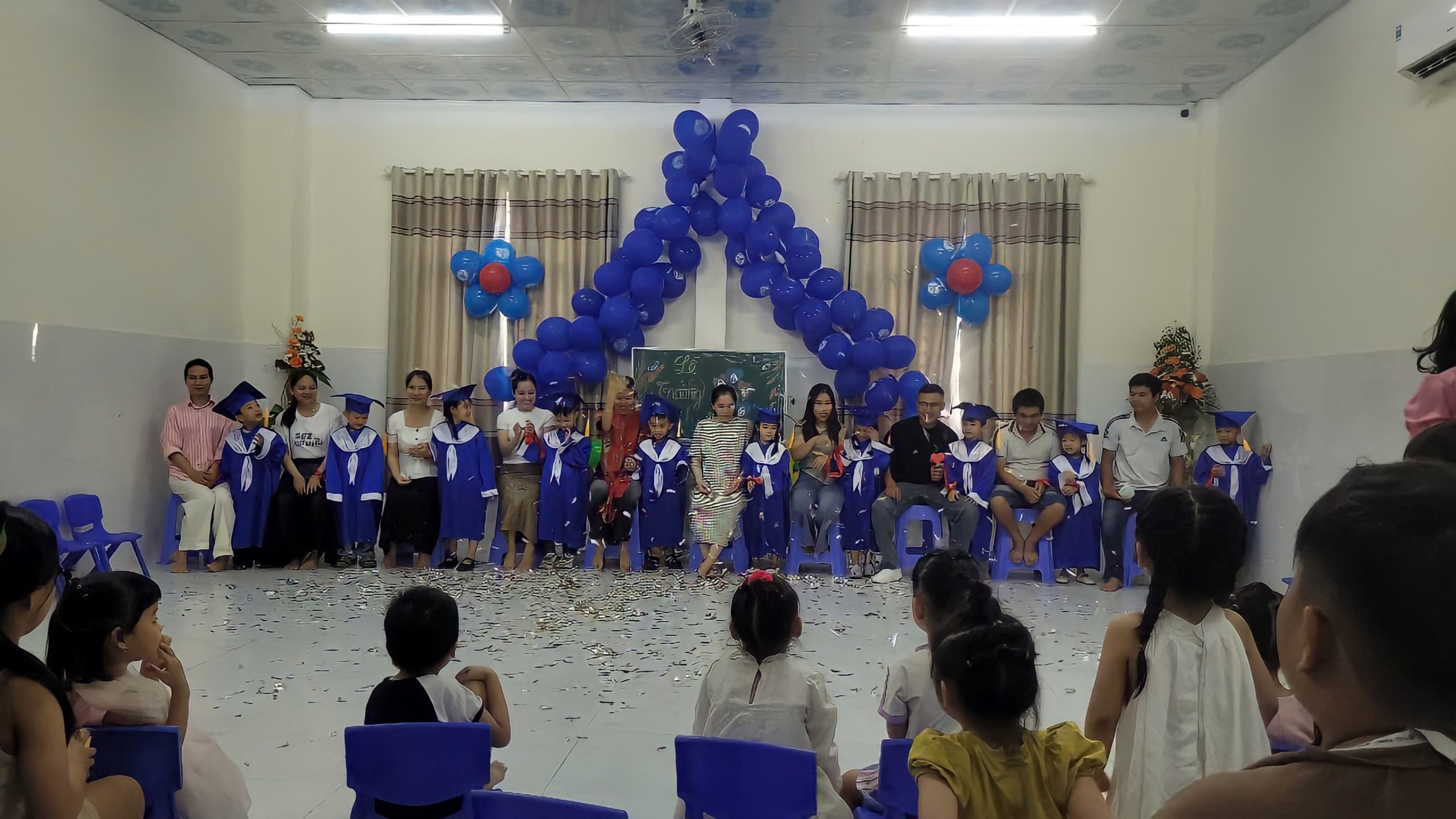Buổi lễ kết thúc trong tiếng vỗ tay vang dội, tiếng pháo kim tuyến rực rỡ, và trong những lời chúc mừng dành cho các Thiên thần nhỏ – những mầm non hôm nay, những hy vọng rạng rỡ của ngày mai. Trong lời cảm ơn những người Ba, người Mẹ, quý Soeurs, quý cô – những người không chỉ dạy các con con chữ, mà còn dạy các con biết yêu thương và sống lòng biết ơn.