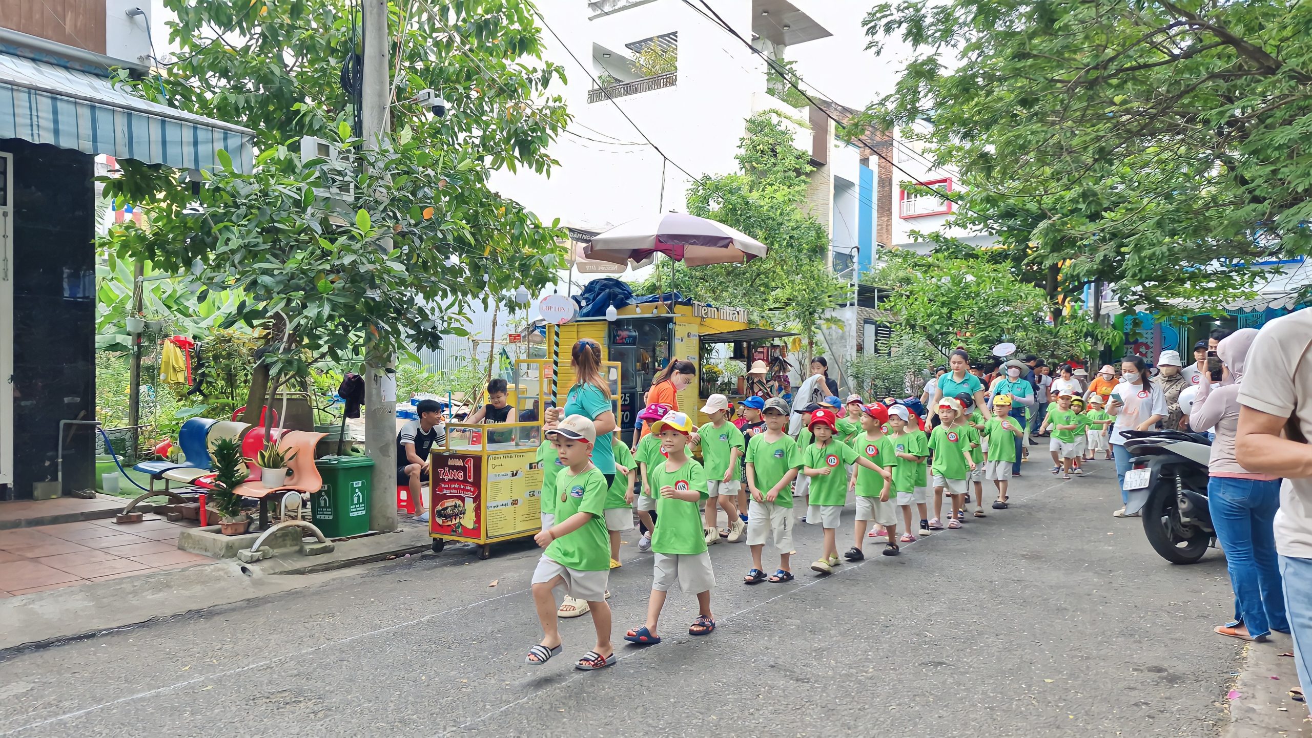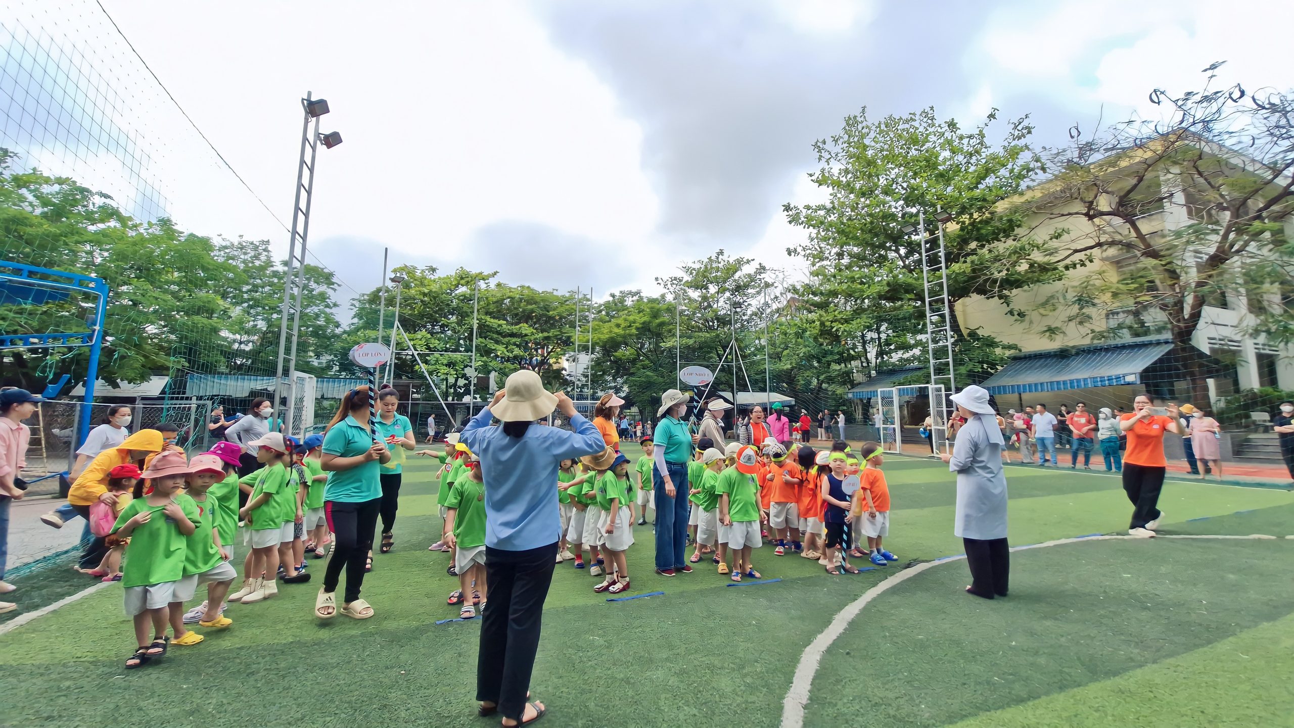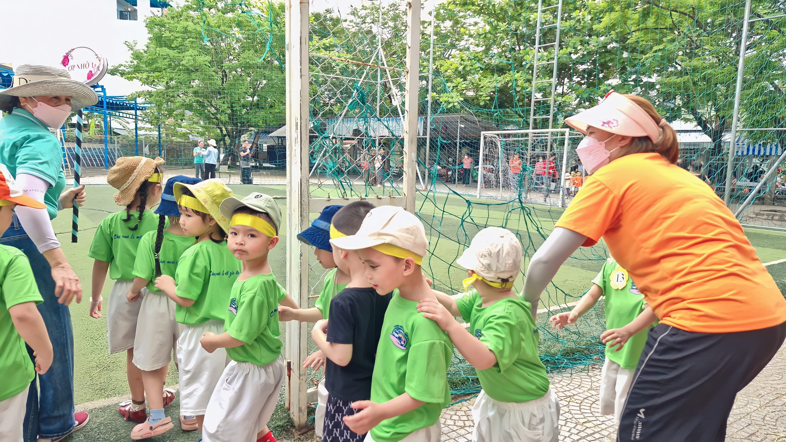 Lễ hội bắt đầu bằng màn diễu hành đầy sắc màu của các lớp. Các “vận động viên nhí” từ lớp Lớn, Nhỡ, Bé lần lượt tiến vào sân với khí thế hào hứng, mang theo những thông điệp đầy ý nghĩa như “Không có gì là không thể”, “Vươn tới đỉnh cao” hay “Yêu thương, chia sẻ vì tình bạn”. Sự tự tin, năng động cùng niềm vui và sự sẵn sàng của các bé đã mang đến bầu không khí đầy hứng khởi.