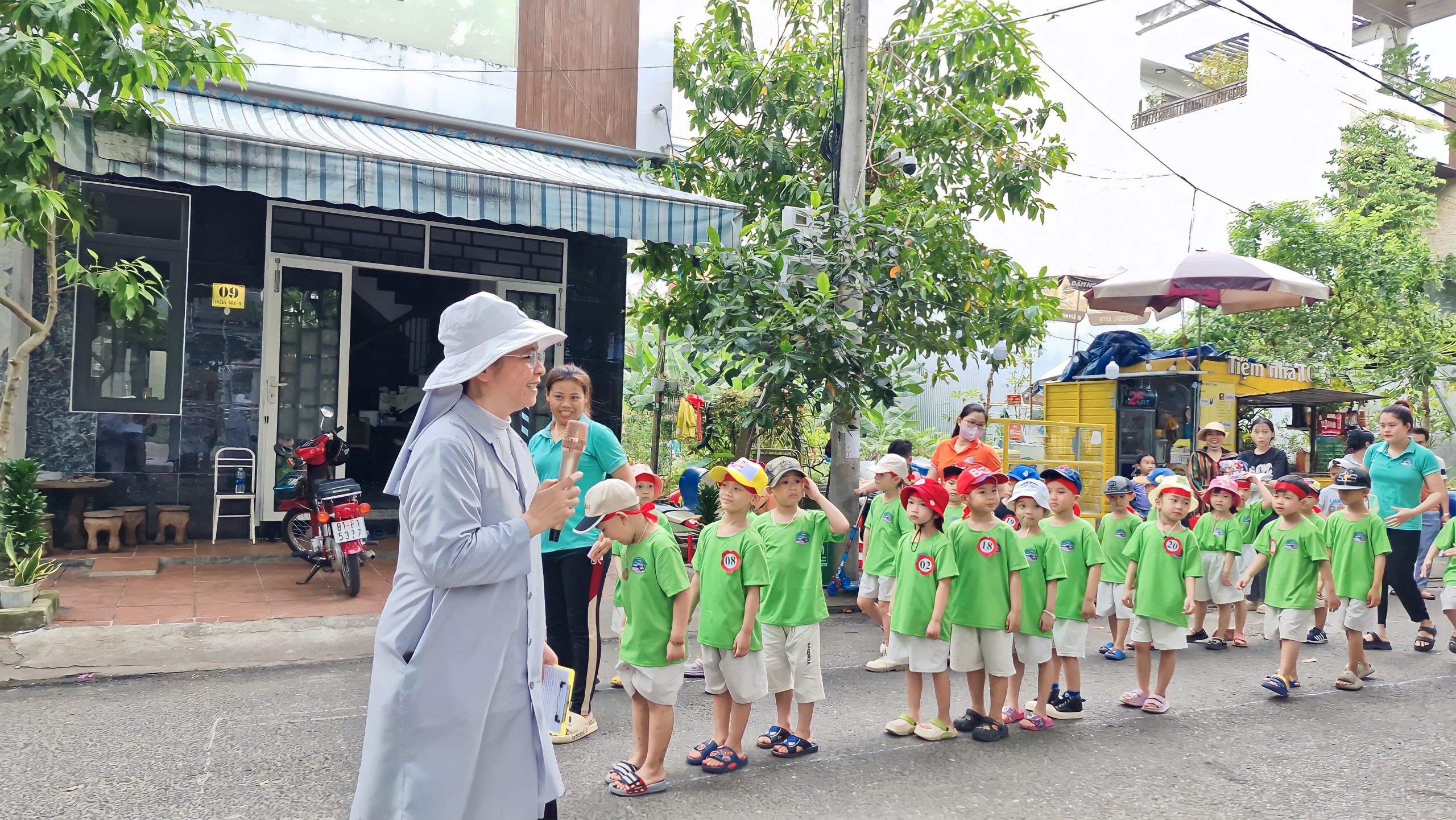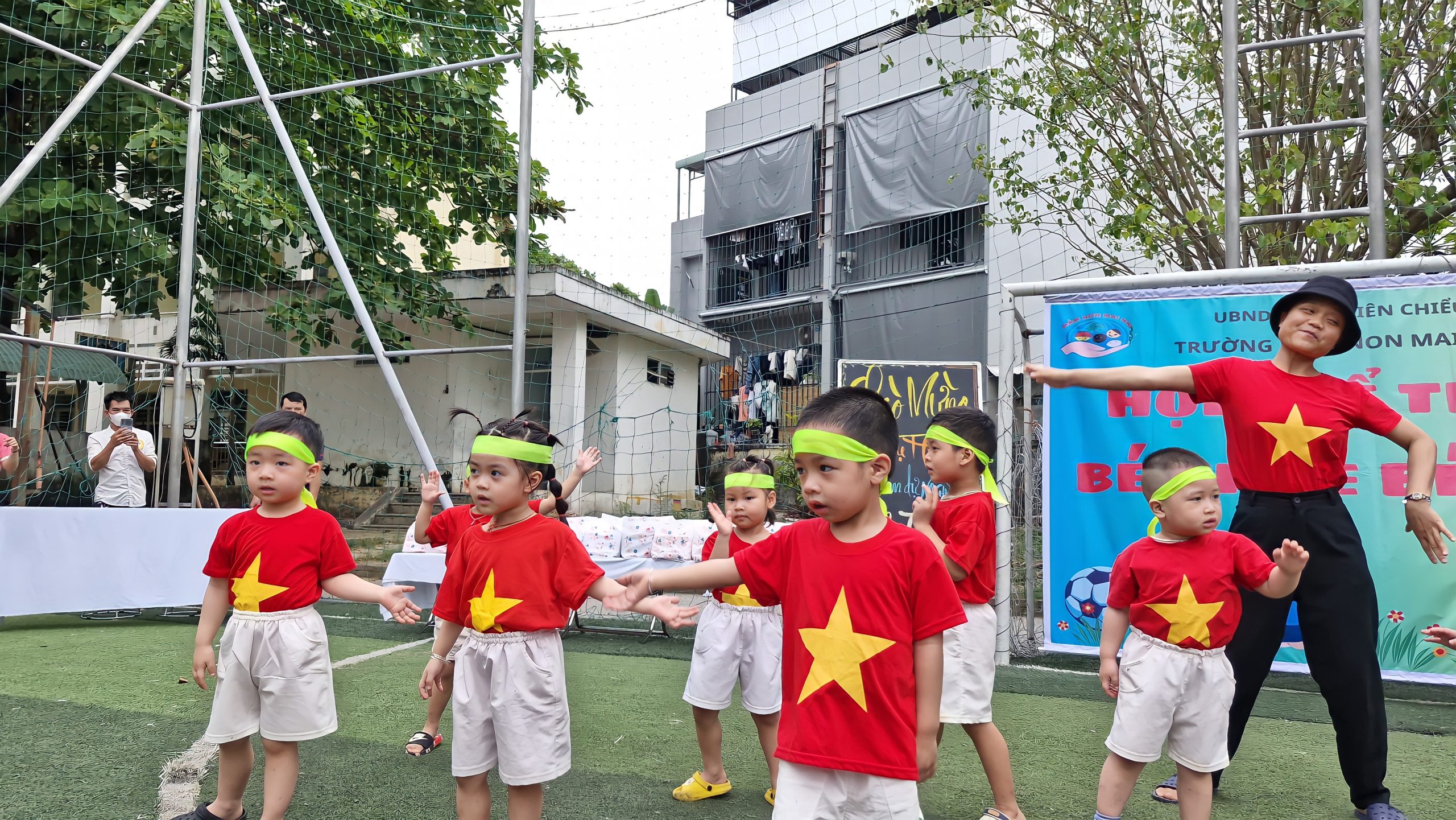Mở đầu chương trình văn nghệ chào mừng là tiết mục “Đà Nẵng quê tôi giải phóng rồi” do các bạn nhỏ lớp Bé 2 biểu diễn, khuấy động sân khấu bằng sự đáng yêu và sôi nổi. Tiếp theo là màn đồng diễn đầy màu sắc, góp phần tạo nên không khí vui tươi, rộn ràng ngay từ những giây phút đầu tiên của lễ hội.