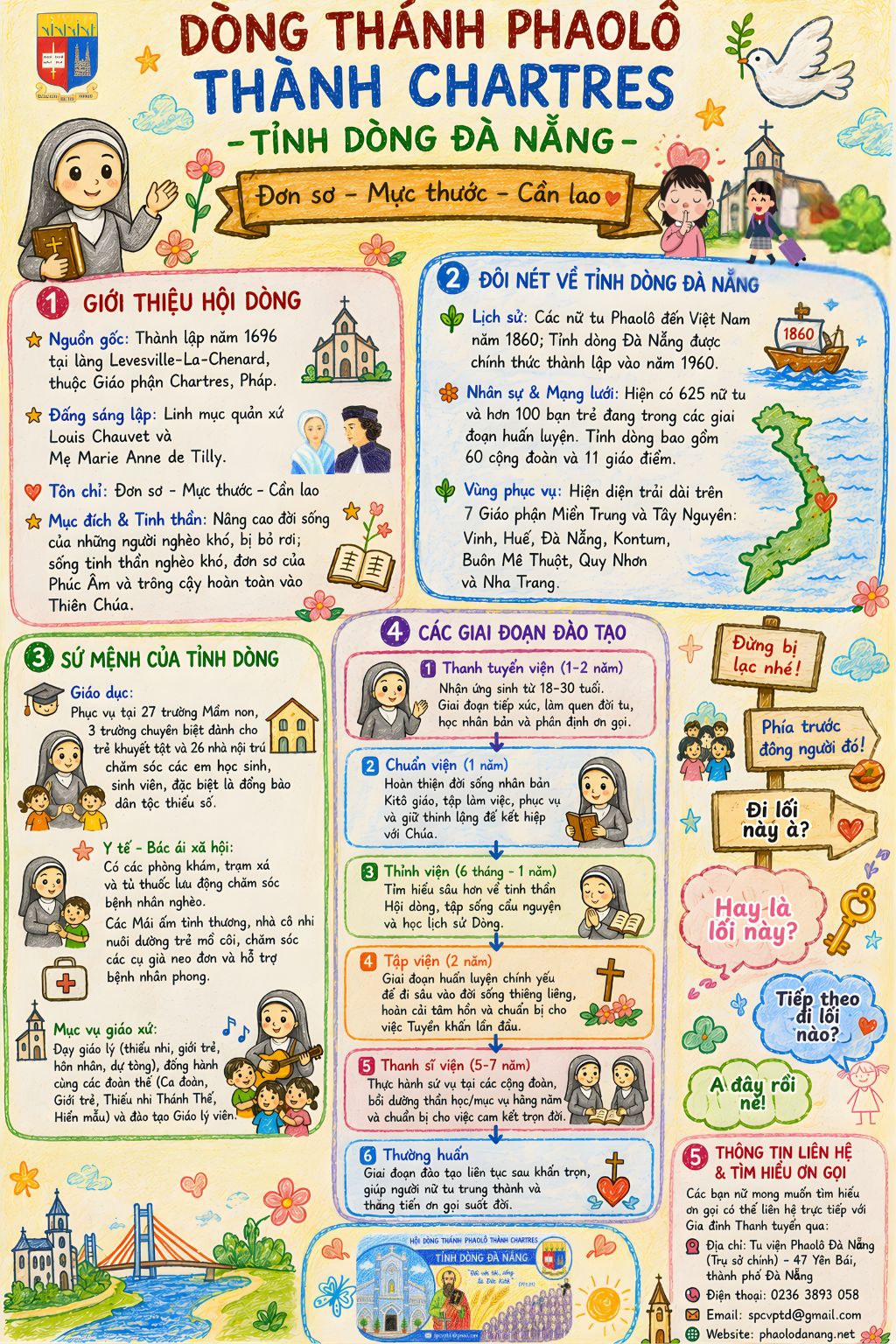 - Lớn lên tựa Cành Nho: Ơn gọi “không phải là một điểm đến tĩnh tại, nhưng là một tiến trình năng động của sự trưởng thành” [6]. Tại gia đình Phaolô Đà Nẵng, bạn sẽ có những người chị em cùng đồng hành, hướng dẫn và nâng đỡ để hạt giống ơn gọi được sinh hoa kết trái dồi dào.
