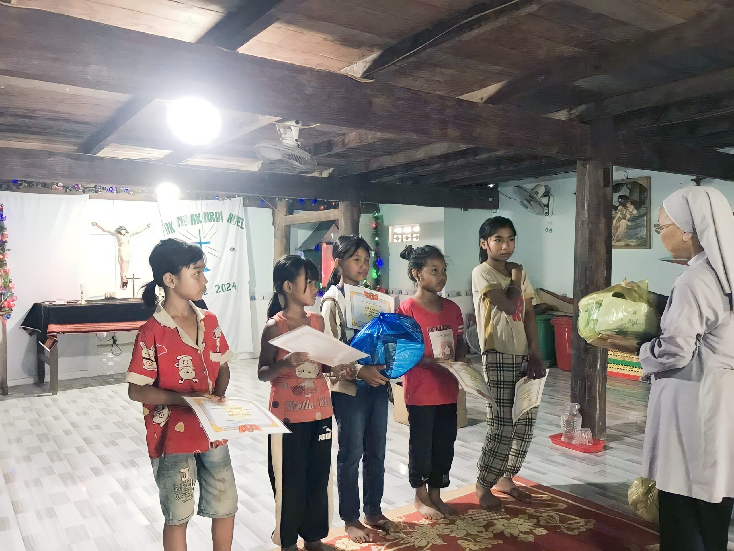 Vì vậy, chúng tôi nỗ lực khích lệ các em học hành bằng mọi cách có thể. Hằng năm, nhà dòng tìm kiếm các ân nhân để trao những phần quà khuyến học nho nhỏ. Chỉ mong một lời động viên, một món quà giản dị cũng đủ giúp các em có thêm nghị lực bước tiếp.