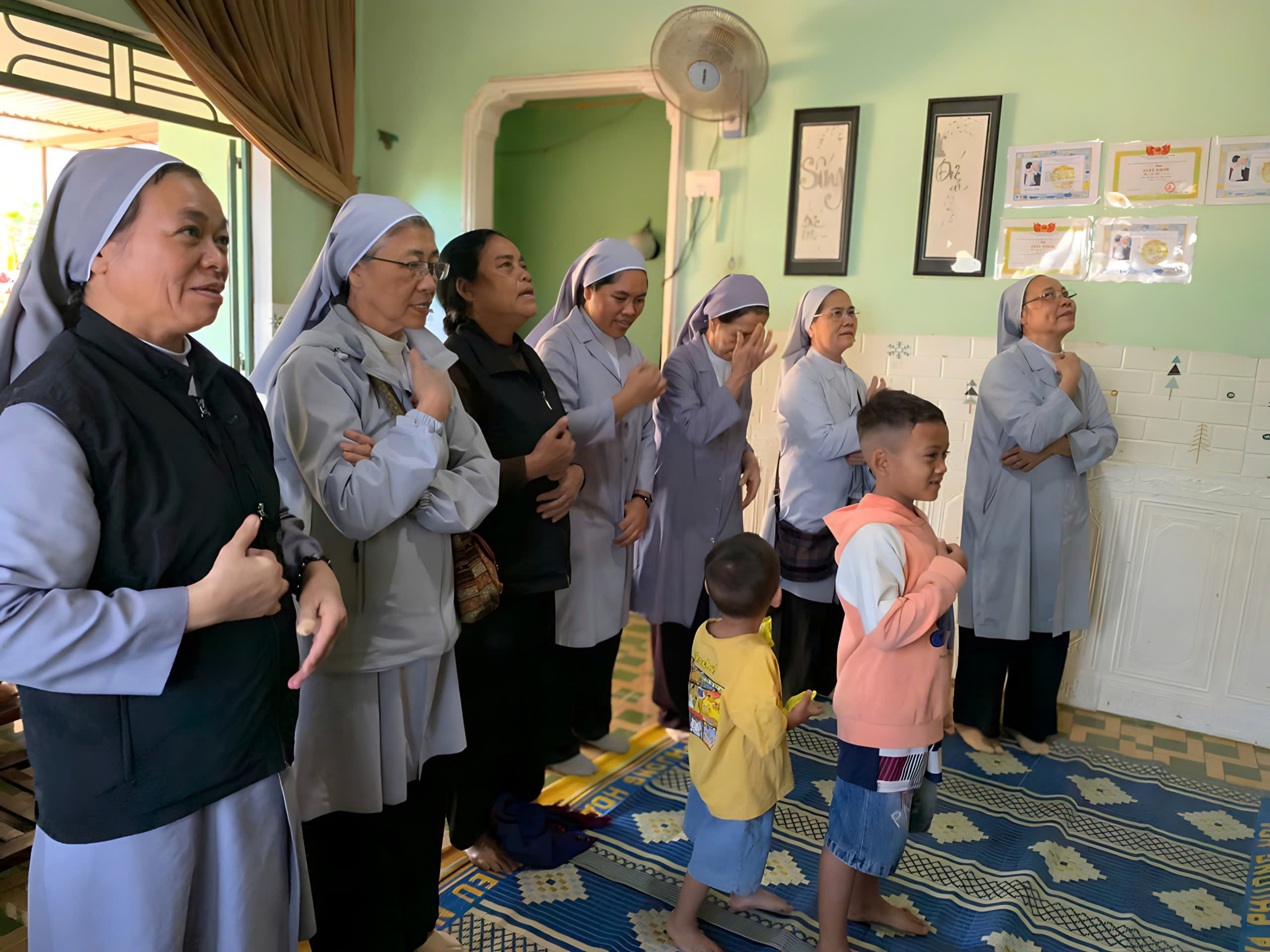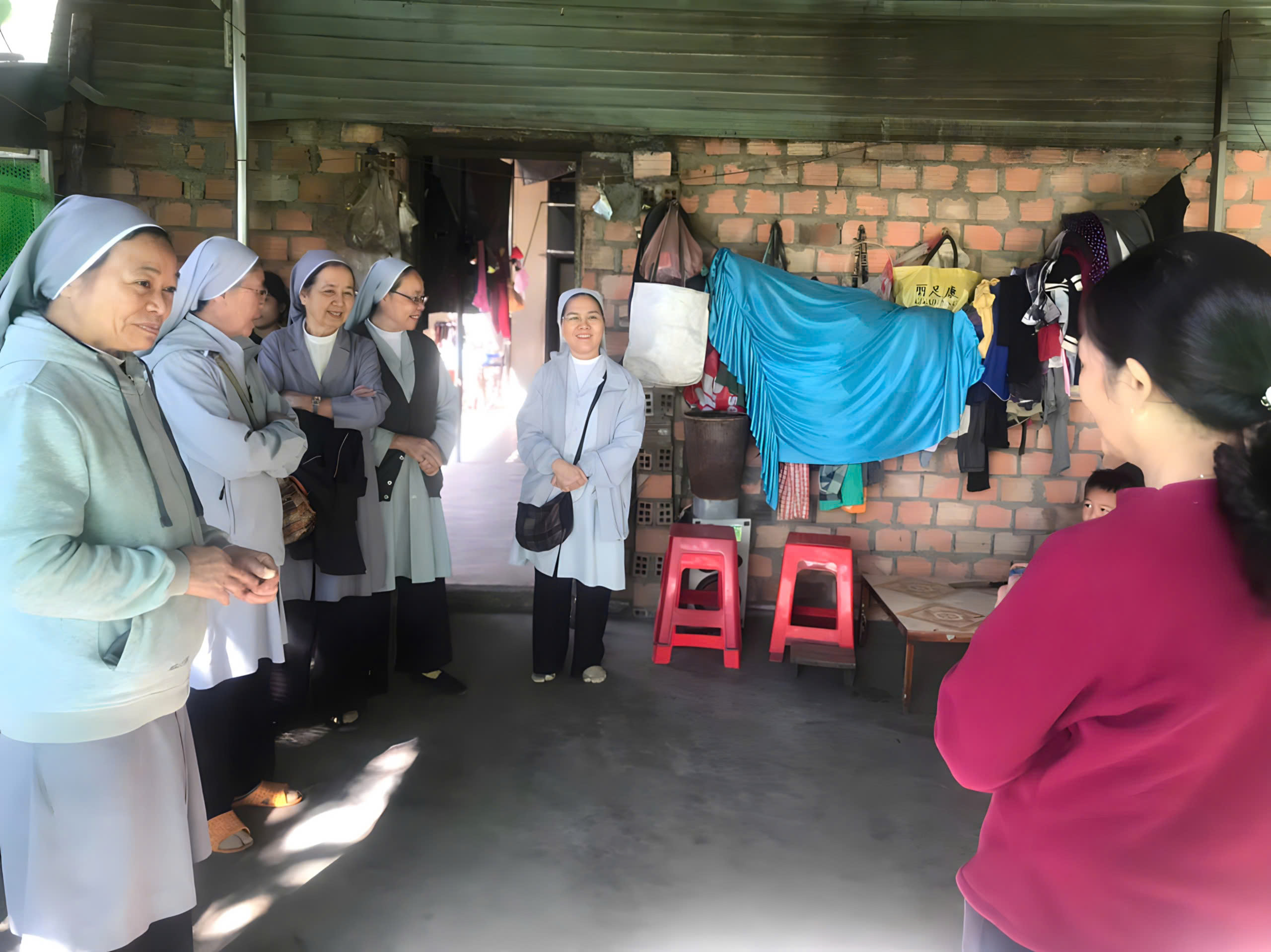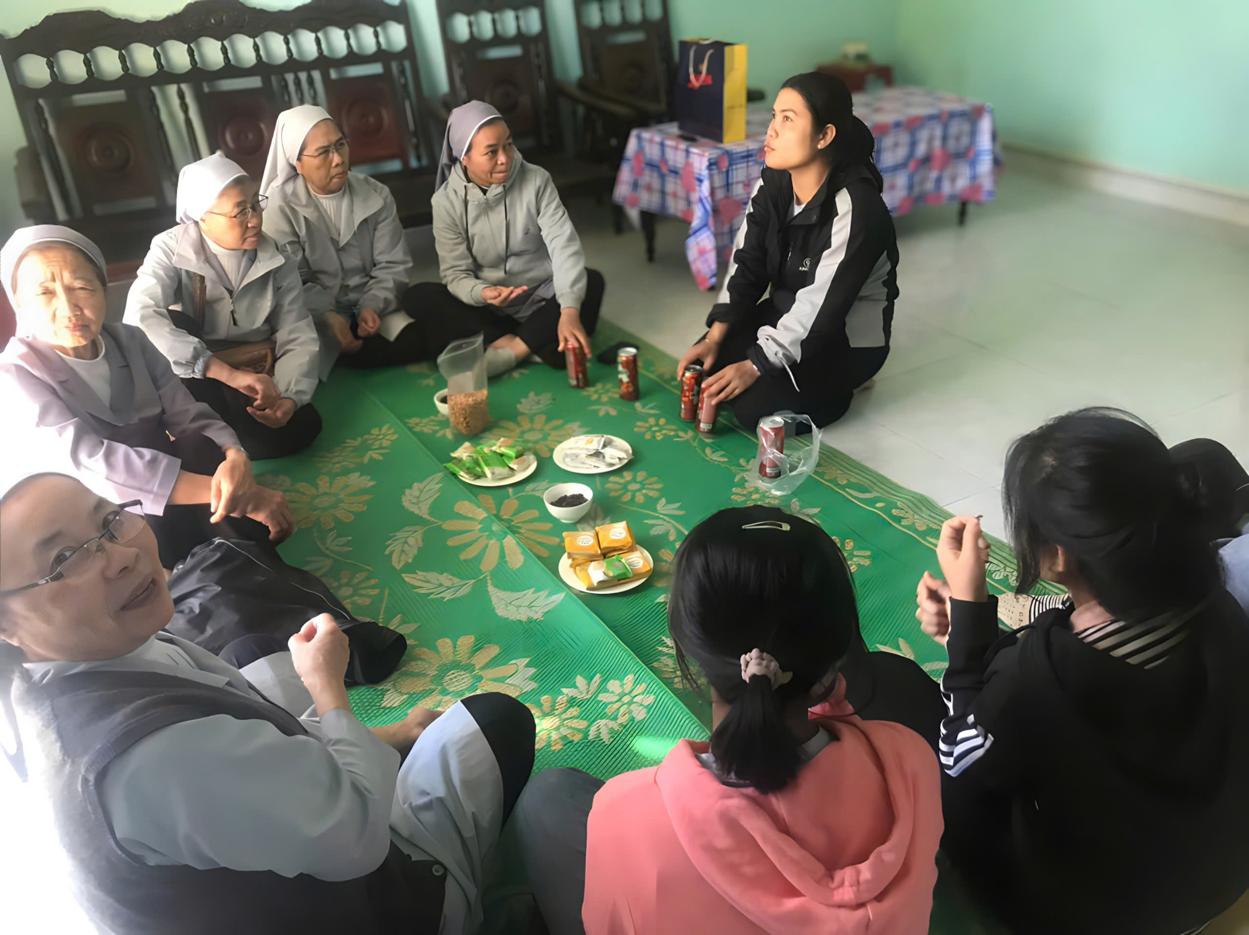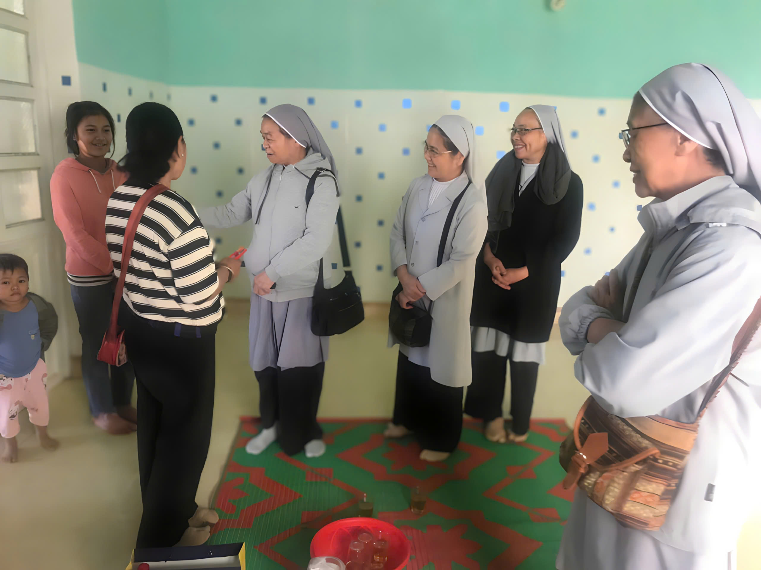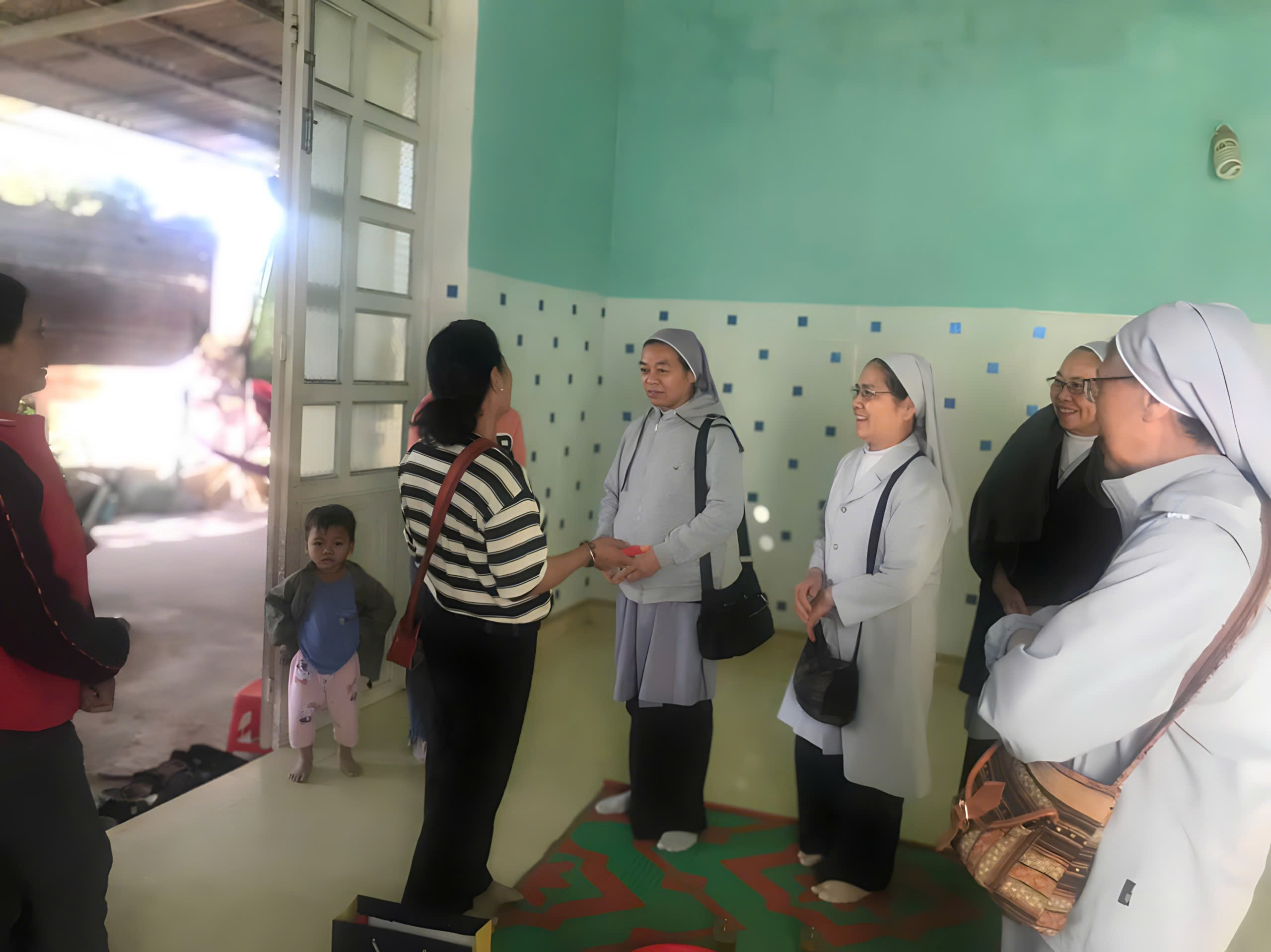 Ấn tượng sâu sắc đọng lại trong tâm trí chị em không chỉ là những cung đường gập ghềnh hay thời gian dài di chuyển, mà chính là sự ấm áp và hiếu khách của các gia đình. Dù cho cuộc sống còn khó khăn, nhà cửa còn đơn sơ, nhưng các gia đình vẫn đón tiếp các chị em bằng tất cả tấm lòng, với mong muốn diễn đạt tình cảm yêu thương, trìu mến nhất đối với các Soeurs. Những tấm chiếu đơn giản trải vội, những ly chén không đủ hoặc không đồng đều… nhưng trào tràn những giọt nước cảm mến và biết ơn chân thành, đã làm tan biến mọi khoảng cách. Nơi ấy, tình yêu thương không nằm trong vật chất, mà hiện diện rõ ràng trong những giây phút sum vầy, trong từng câu chuyện thân mật giữa các Soeurs và gia đình.