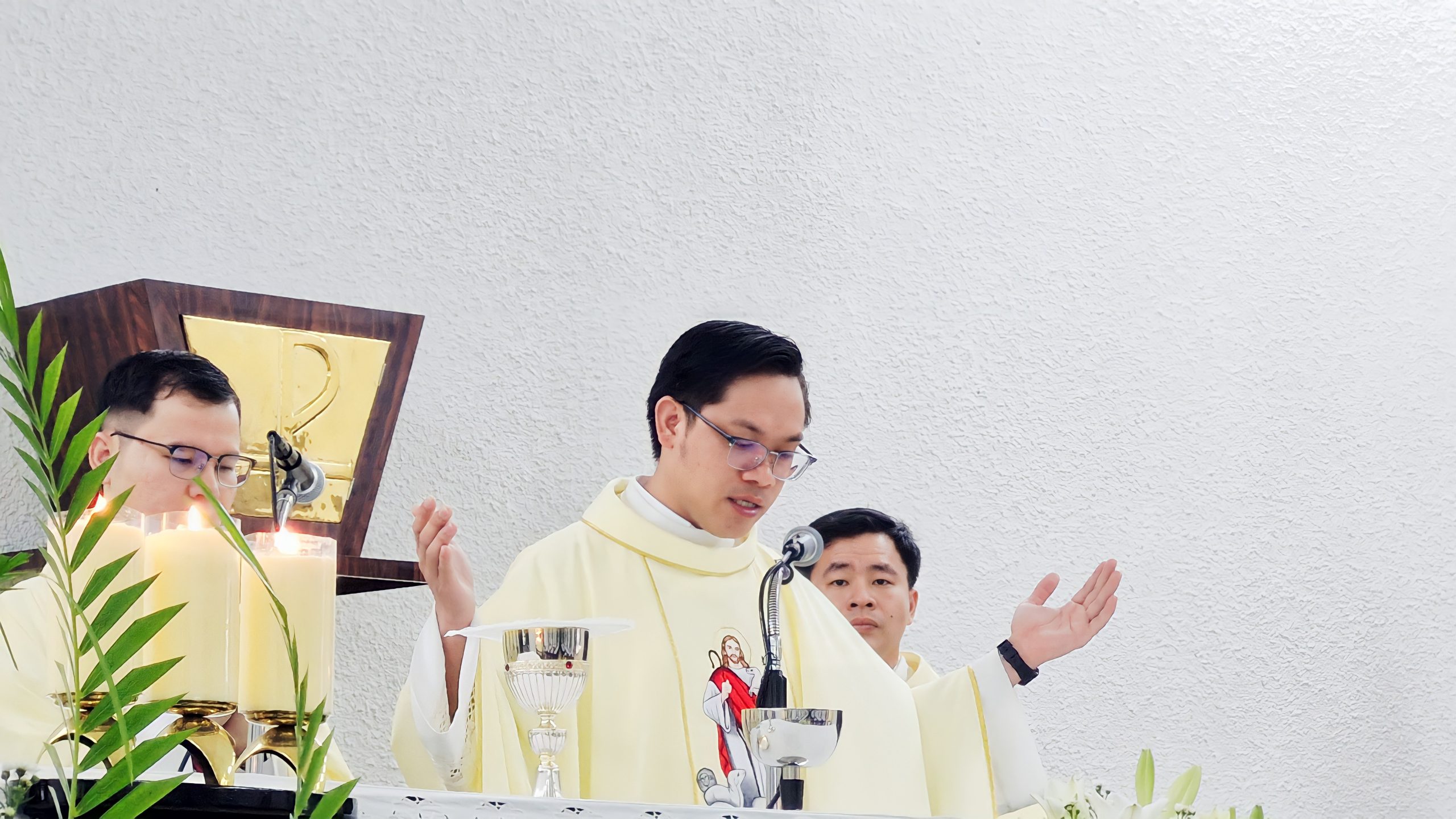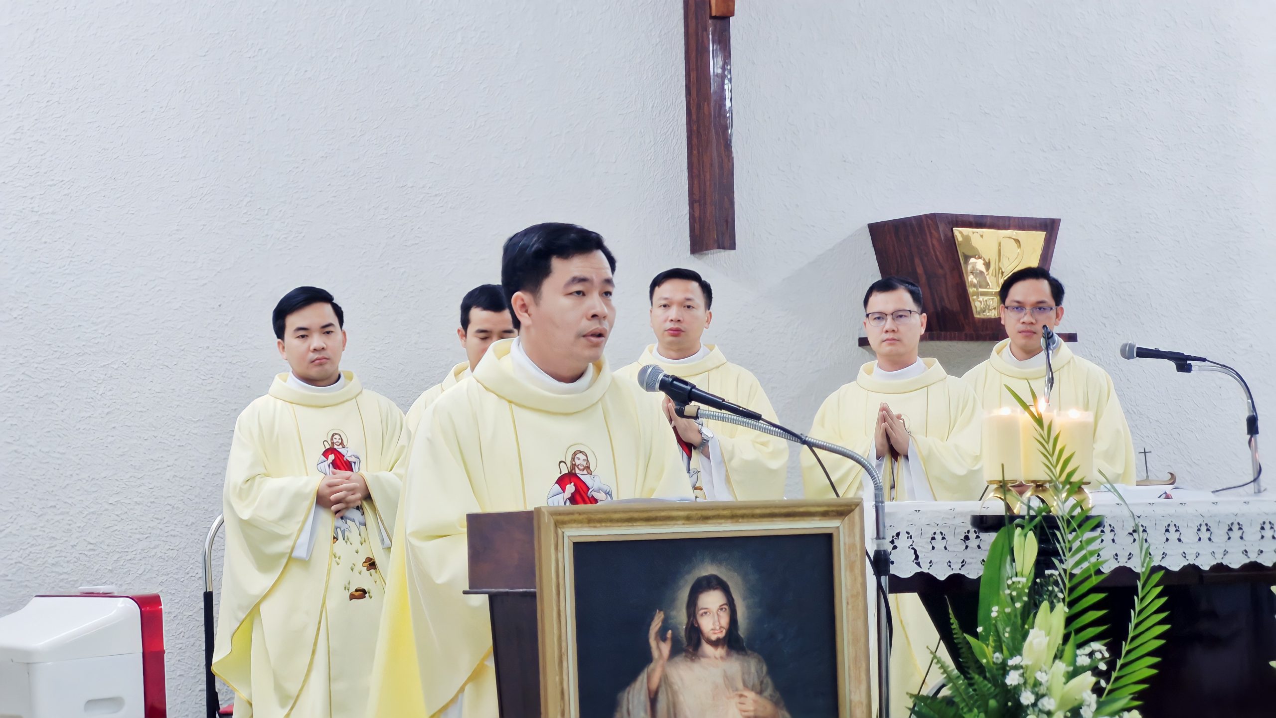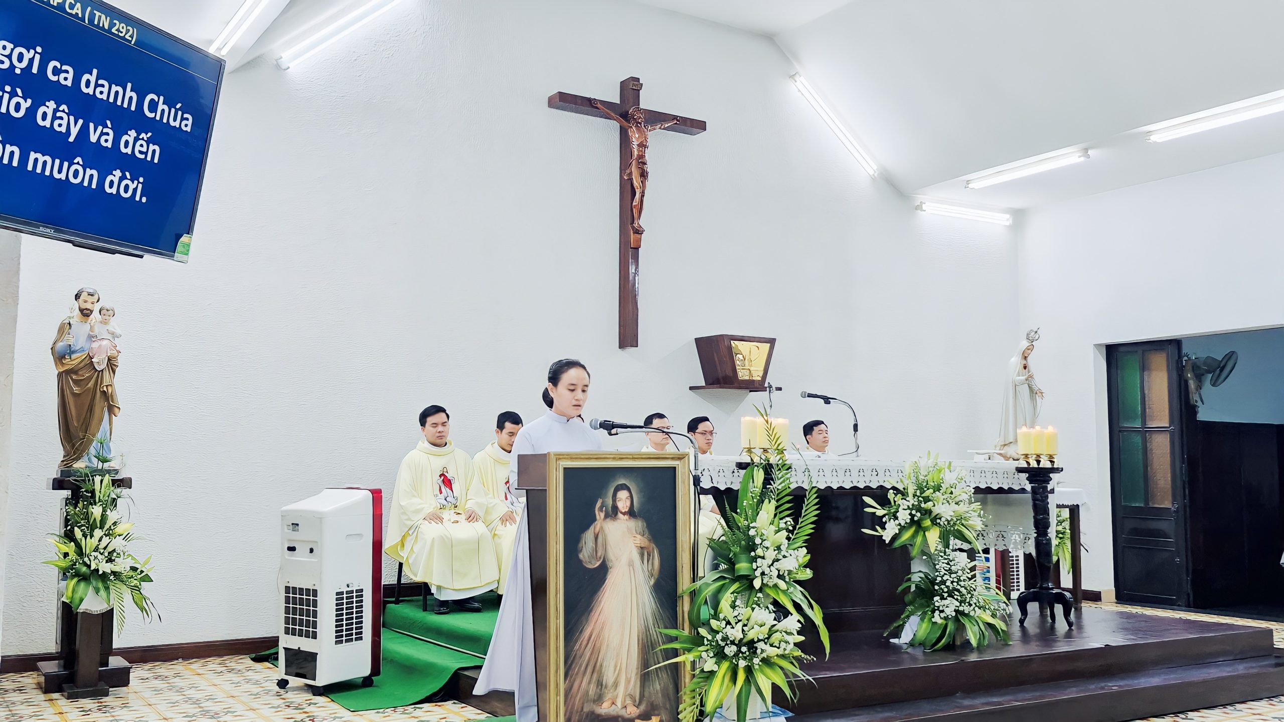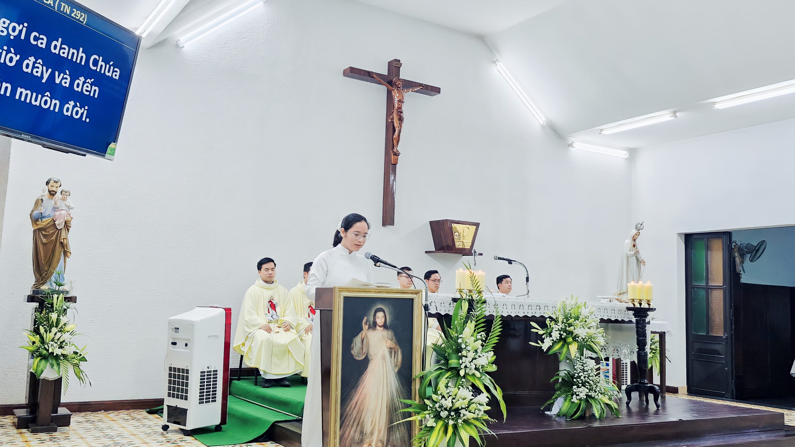 Thánh lễ do Cha Phaolô Trần Xuân Vũ chủ tế, và phần chia sẻ Lời Chúa do Cha Tađêô Nguyễn Thế Lĩnh đảm trách. Qua bài giảng sâu sắc và lắng đọng, Cha Tađêô dẫn dắt cộng đoàn suy niệm về đức tin phó thác, lấy cảm hứng từ Thánh Vịnh 130: “Như trẻ thơ nép mình lòng mẹ – Trong con hồn lặng lẽ an vui”