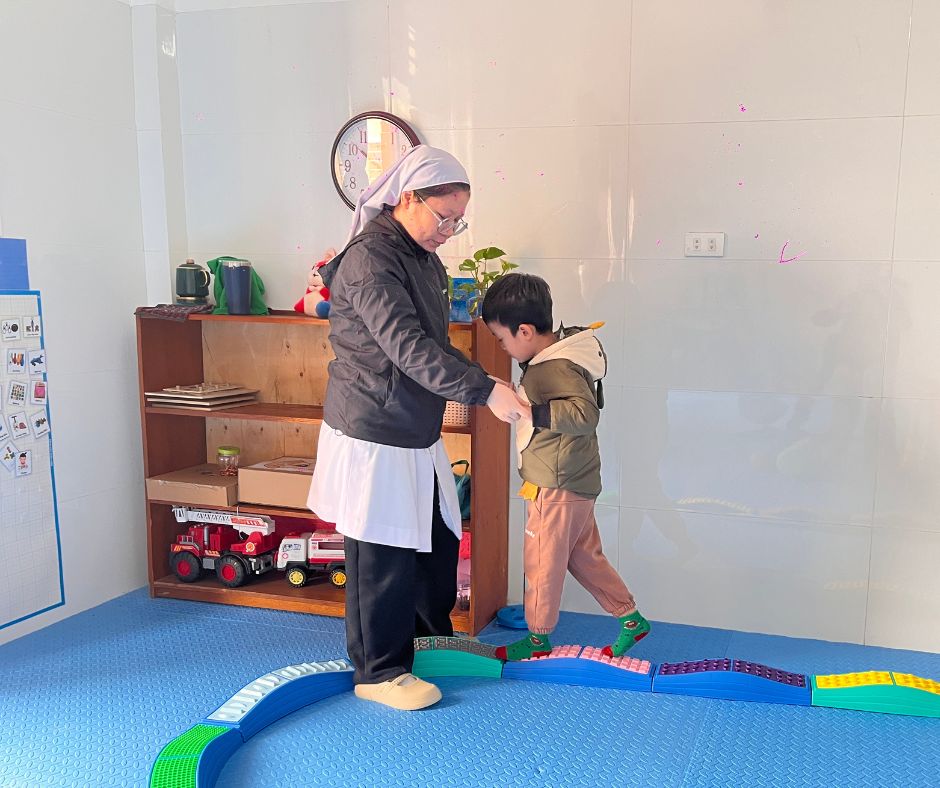 Những thay đổi tuy nhỏ nhưng vô cùng quý giá: có em từng sợ hãi nay biết nắm tay, có em không dám nhìn ai nay biết cúi đầu chào, có em gần như bất động nay tự biết đứng lên. Mỗi bước tiến đều là hồng ân, là bằng chứng rằng tình thương của Chúa vẫn đang âm thầm hoạt động.