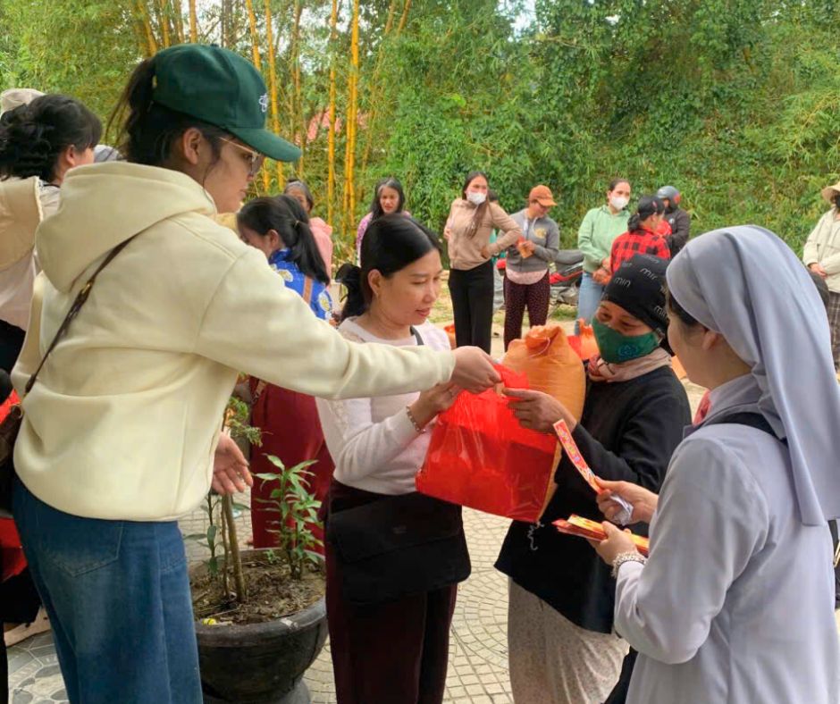 Những món quà được trao gởi, quần áo, cuốn vở, hay chút kinh phí từ Hội chợ Xuân, tuy nhỏ bé nhưng nặng trĩu nghĩa tình, đặc biệt là những hũ dưa món do chính tay quý Soeurs chuẩn bị. Tất cả đều là niềm vui phục vụ, là sự chắt chiu của phụ huynh, sự hy sinh của các cô giáo, và cả sự chung tay từ Quỹ Người Nghèo của Nhà Dòng.